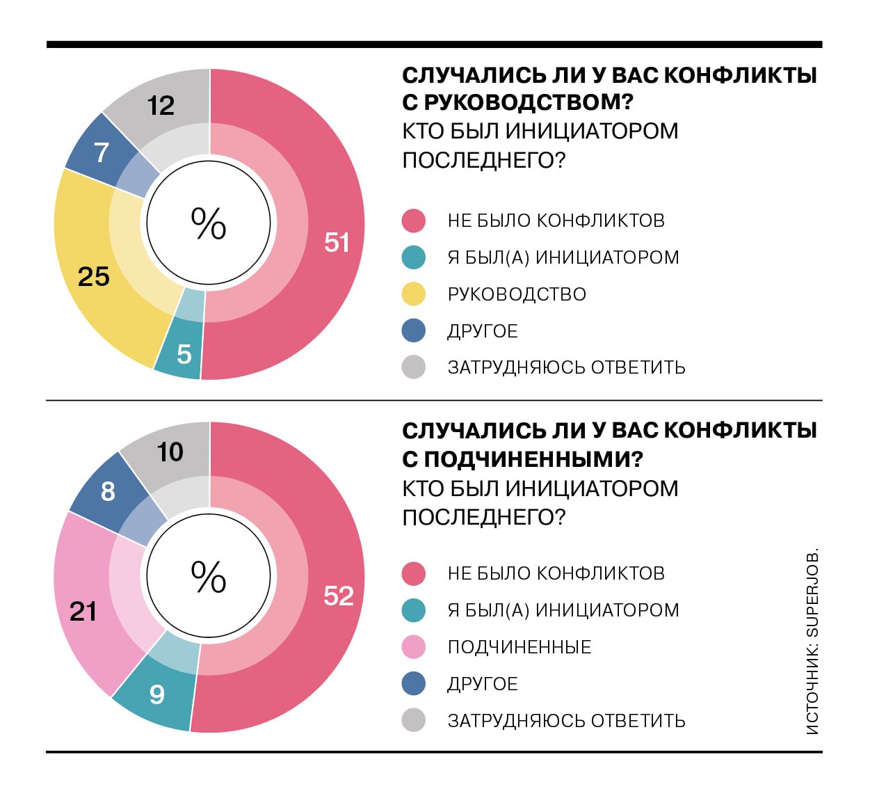 Конфликты с руководством тоже не редкость: они случались у 37 % работающих россиян.