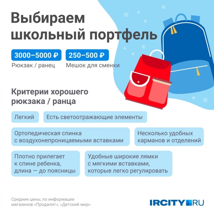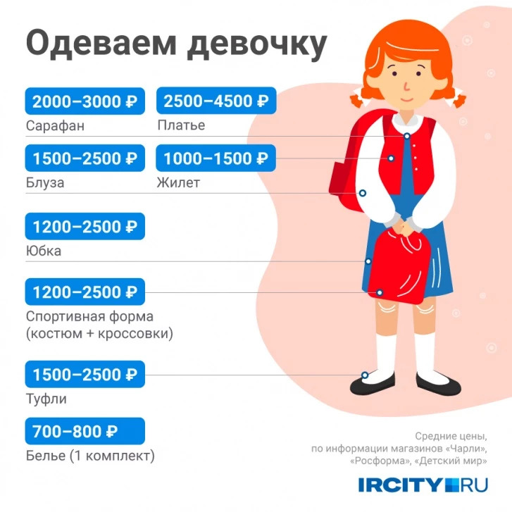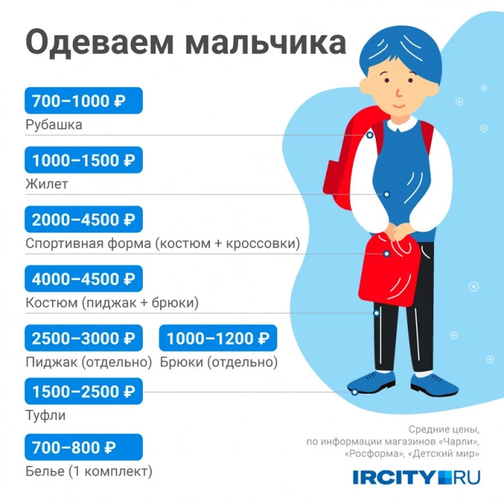Портал «ИрСити» решил посчитать, сколько потребуется денег, чтобы купить школьный костюм и собрать портфель.