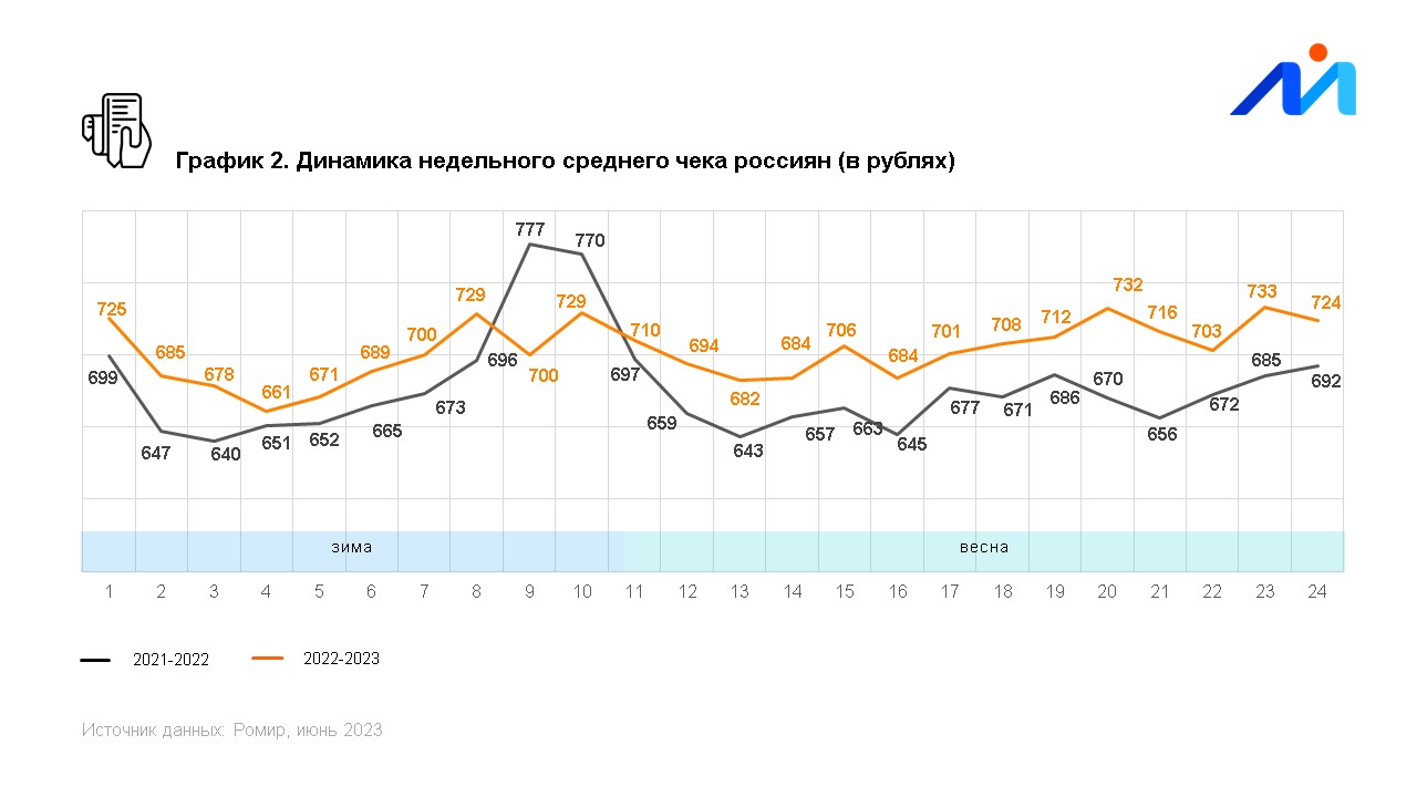 Исследовательский холдинг «Ромир» представляет данные по индексу недельных расходов (ИНР) и индексу недельного среднего чека (ИНСЧ).