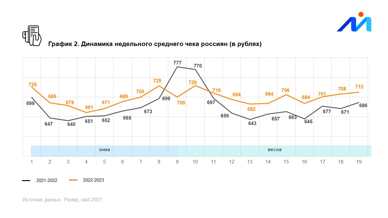 Исследовательский холдинг «Ромир» представил данные по индексу недельных расходов (ИНР) и индексу недельного среднего чека (ИНСЧ).