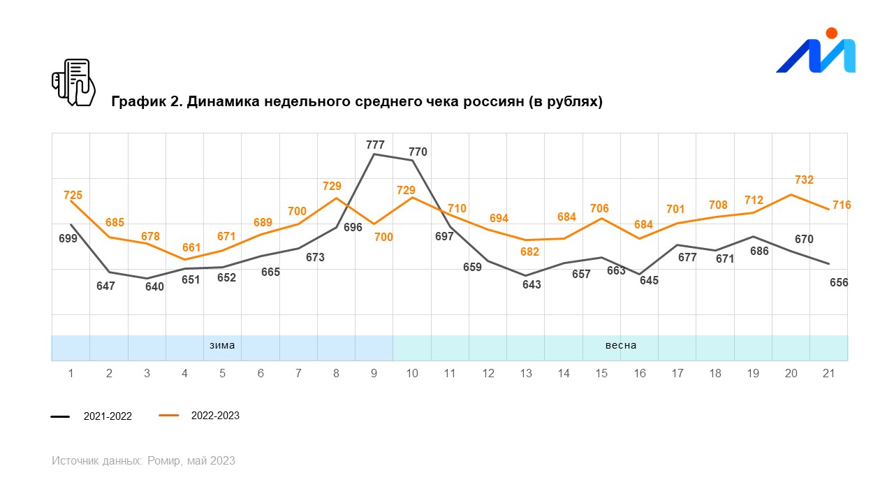 Исследовательский холдинг «Ромир» представляет данные по индексу недельных расходов (ИНР) и индексу недельного среднего чека (ИНСЧ).
