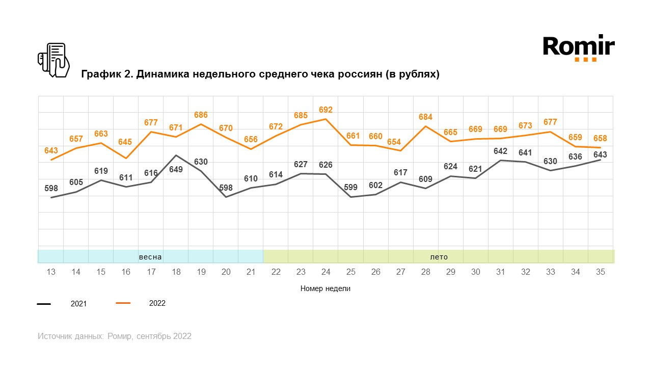 Прежде, с 22 по 28 августа, расходы сократились на 2,9 %, а средний чек — на 2,7 %.