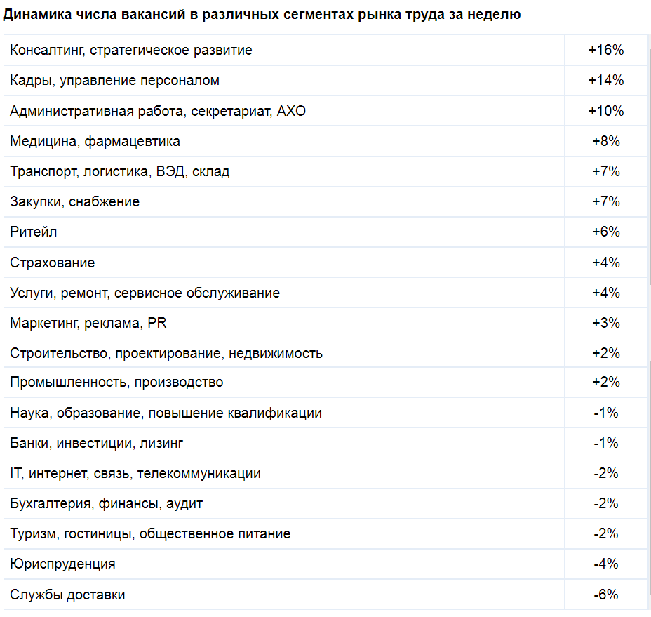 В службах доставки возможность трудоустроиться уменьшилась на столько же.