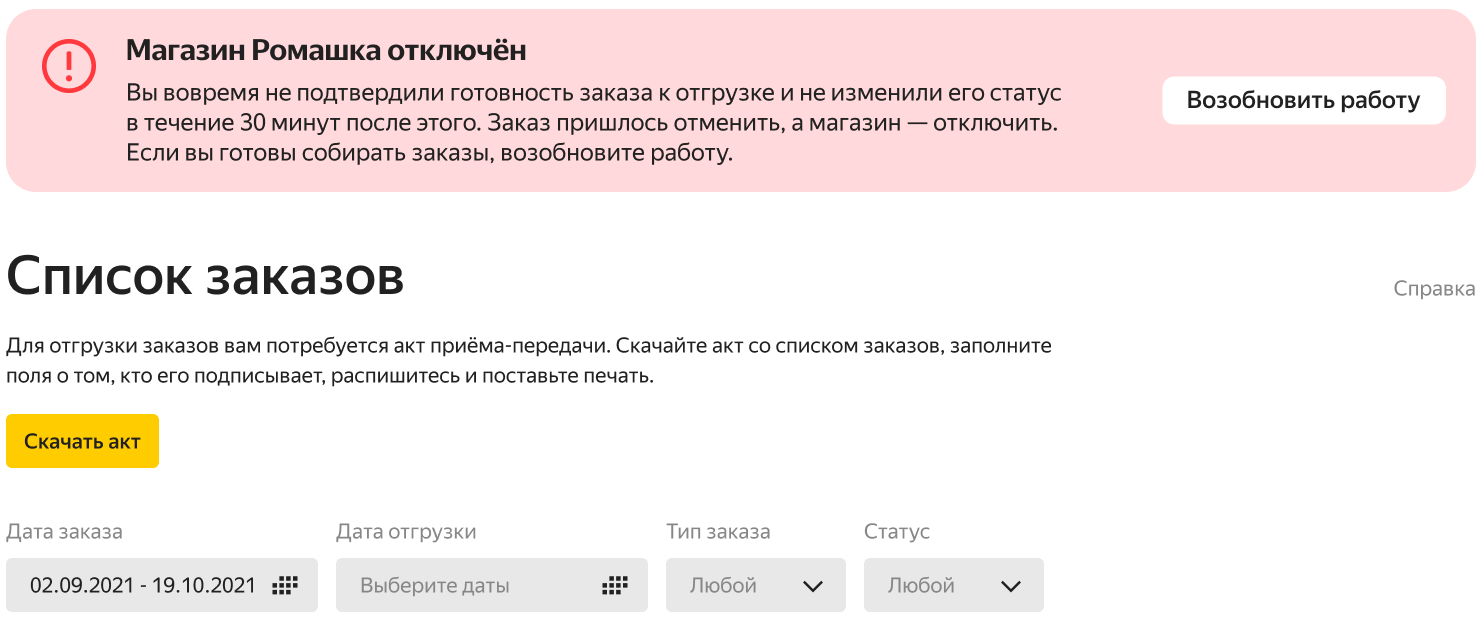 Возобновить работу после просроченного заказа на «Яндекс.Маркете» продавцам станет проще