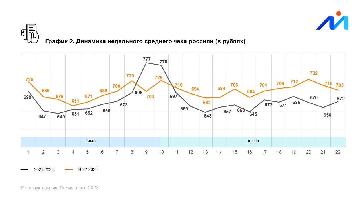 Исследовательский холдинг «Ромир» представил данные по индексу недельных расходов (ИНР) и индексу недельного среднего чека (ИНСЧ).