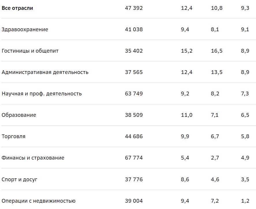 Самые низкие зарплаты зафиксированы в сфере спорта, досуга и развлечений — 37,8 тыс. ₽.