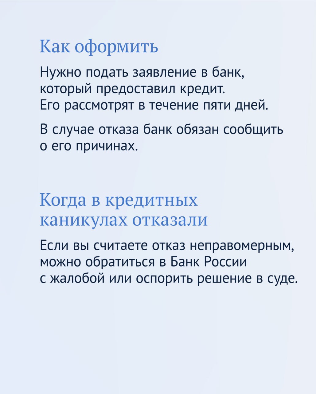 Что представляют собой кредитные каникулы и как их оформить — в инфографике.
