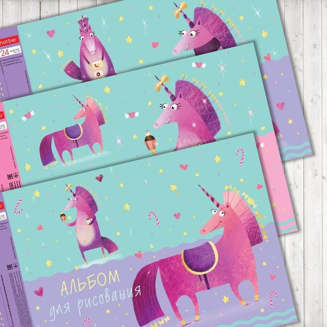 Кто сказал, что единорогов не существует? Не верьте! Эти мифические персонажи живут на обложках альбомов серии «Юникорнизация». Такие альбомы зарядят позитивом и порадуют качеством исполнения. Разбавьте будни яркими красками!