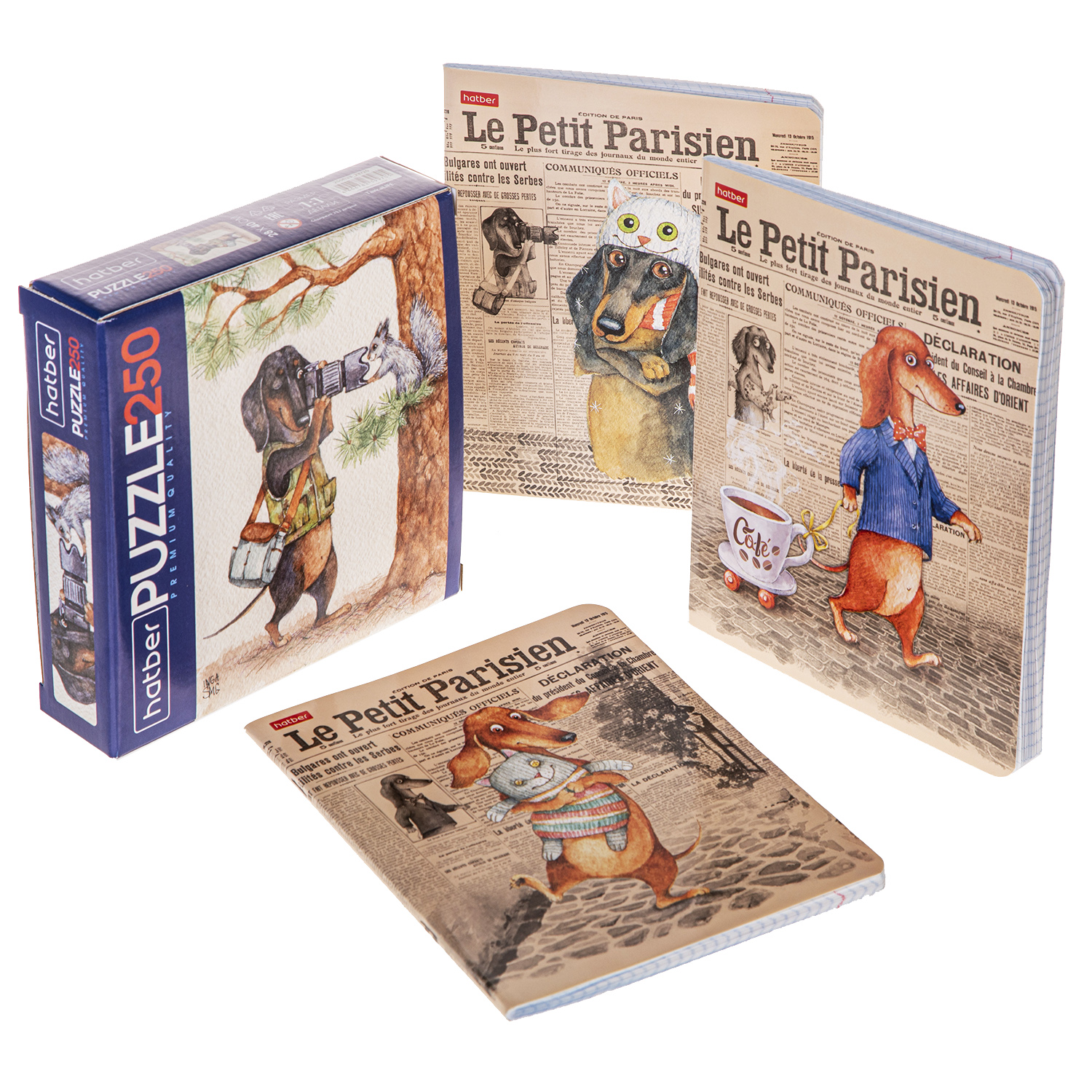 Кофейная тема обыгрывается и при оформлении одной из тетрадей серии «ТаксаLife». В ней очаровательные четвероногие фотографируют, позируют и даже куда-то везут чашечку ароматного кофе. В ассортименте серии также пазлы, альбомы, блокноты.