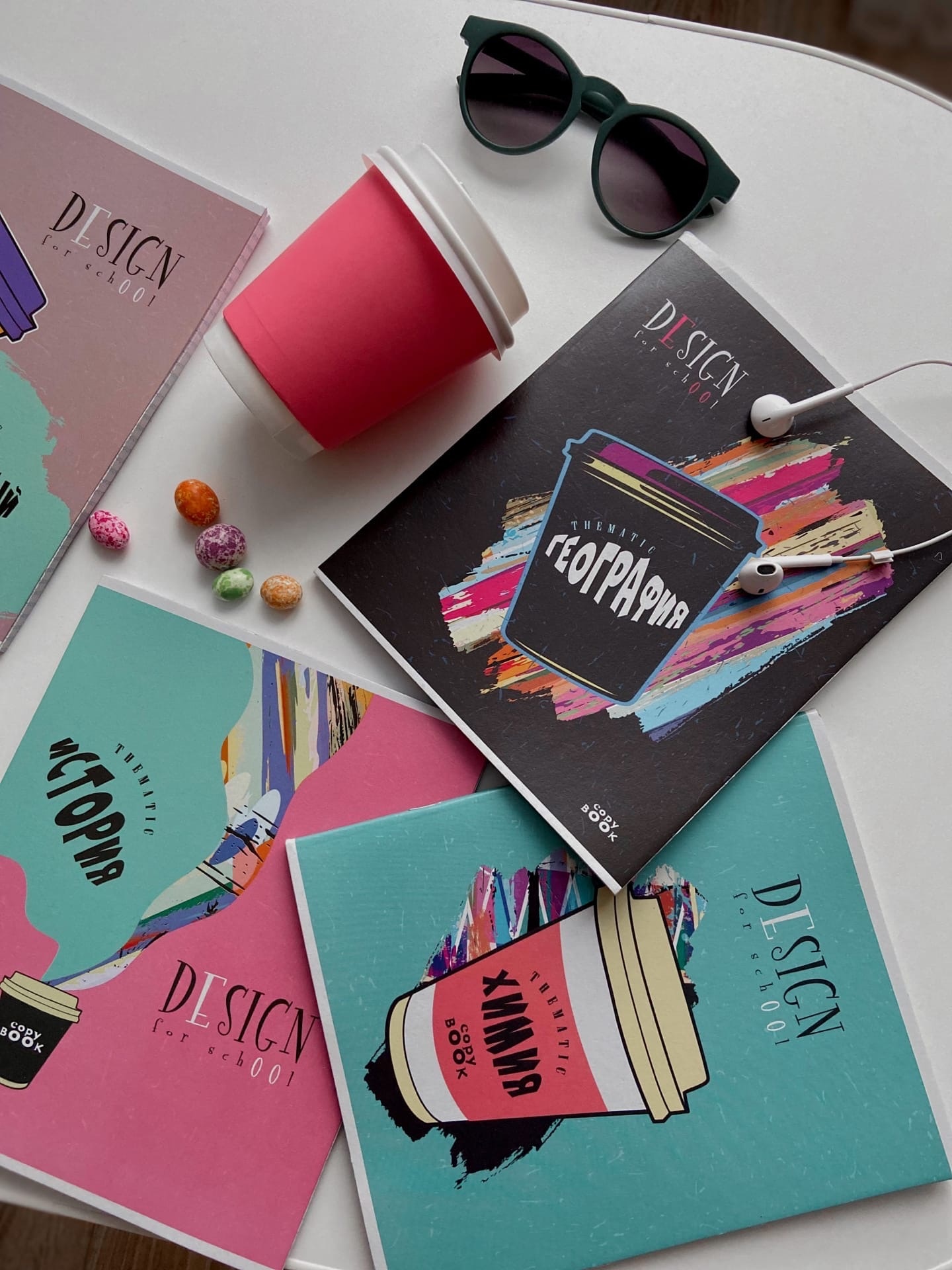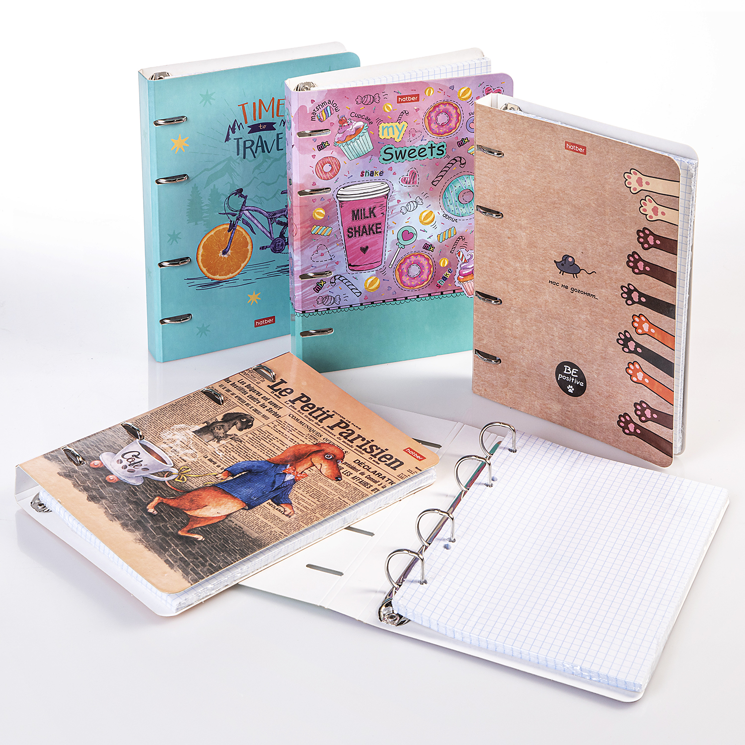 Тетради на кольцах — любовь всех старшеклассников и студентов. Очень удобно, когда можно вести записи по нескольким предметам, менять листы местами, ставить любой универсальный блок, ведь в новинках четыре стандартных кольца и обложка с высечкой под них. И тем более замечательно, когда на обложке твоей тетради любимый кофе и донаты. Яркие и стильные, они постоянно притягивают взгляды.