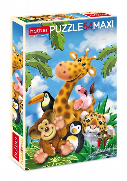Hatber учит дружить с раннего детства. Специально для самых маленьких компания предлагает MAXI-пазлы на 54 элемента. Пазл «Весёлые джунгли» с жирафом и очаровательными друзьями получился очень милым и жизнерадостным.