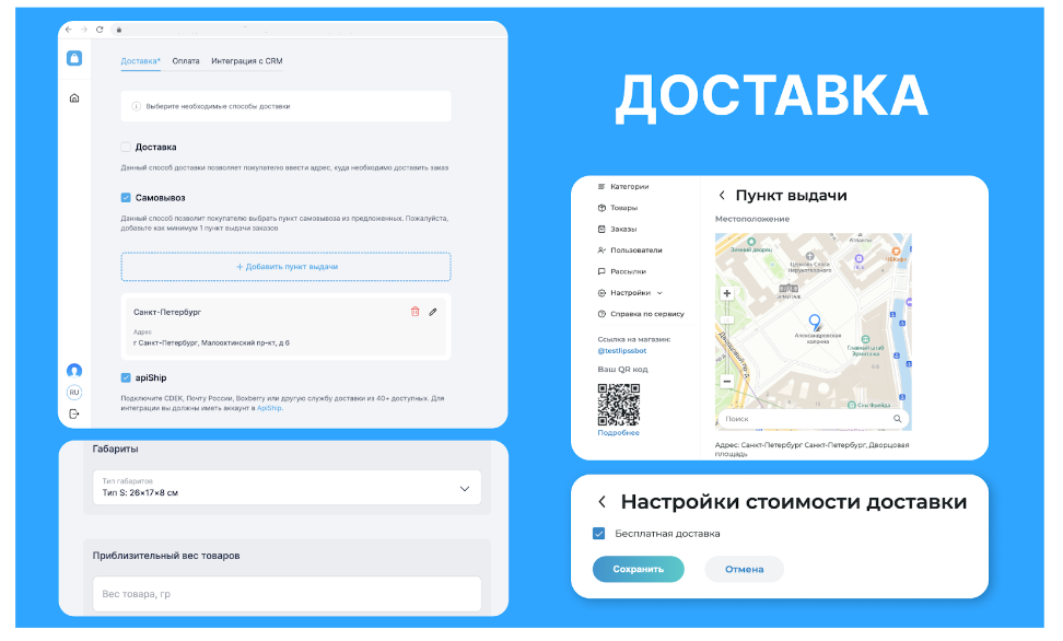 Многие платформы предоставляют 40+ вариантов доставки (СДЭК, Boxberry и др.), а также можно подключить доставку курьером или самовывоз.