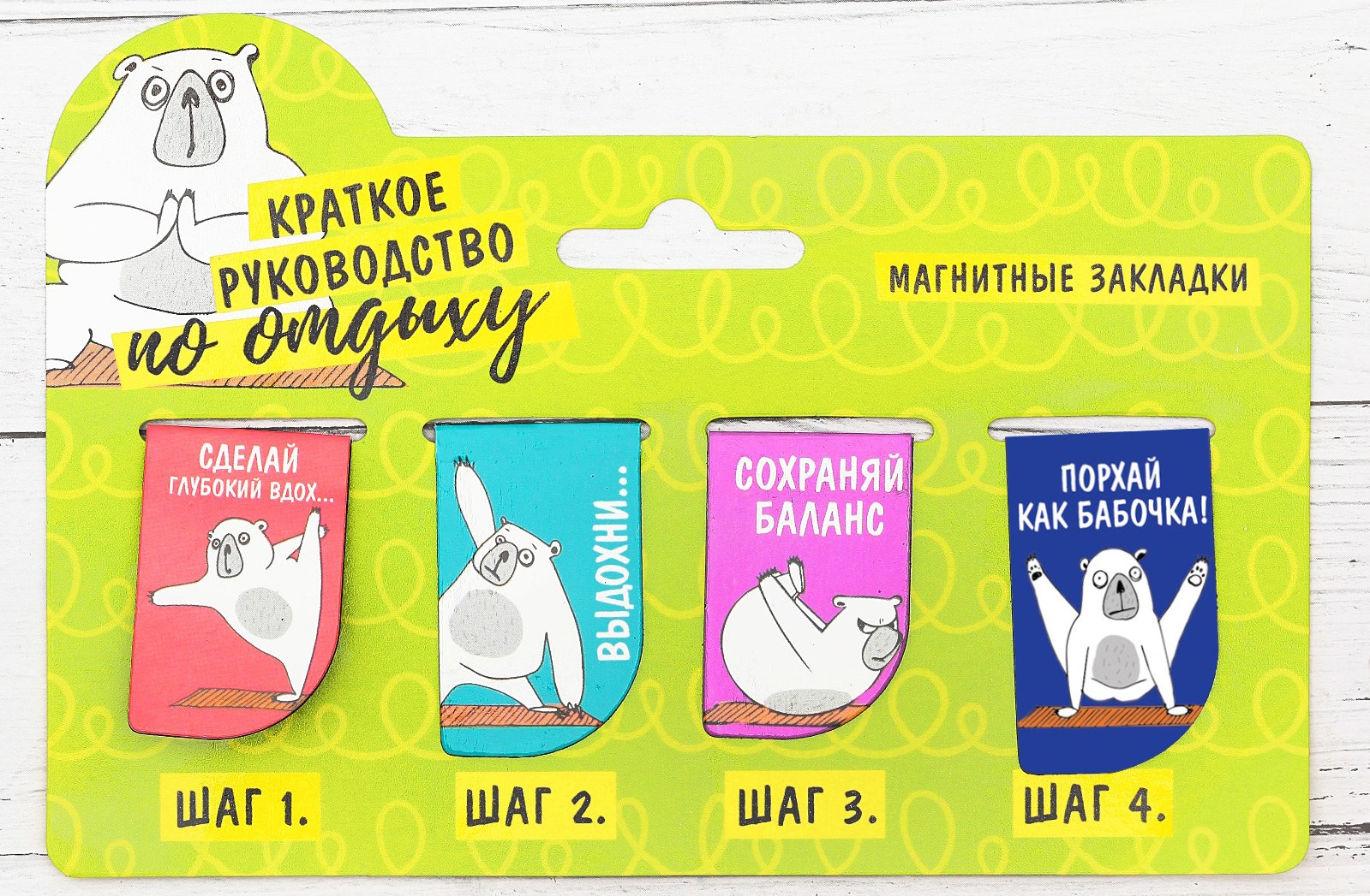 ArtFox решил не ограничиваться каким-то одним видом продукции и выпустил целую серию товаров. Её герой — пушистый медведь — очень старается сохранить душевное равновесие в ежедневном круговороте дел, а помогает ему, конечно же, йога.