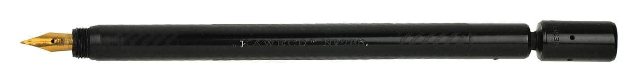 No 736 open and closed is a Kaweco Safety Fountain Pen from 1908. Generally, the safety fountain pen was the most popular filling system between 1905 and 1930. When refilling the eye-dropper, the section had to be removed but with this new system the section and nib could stay connected, the cap simply had to be removed and then the pen could be refilled with a pipette.
