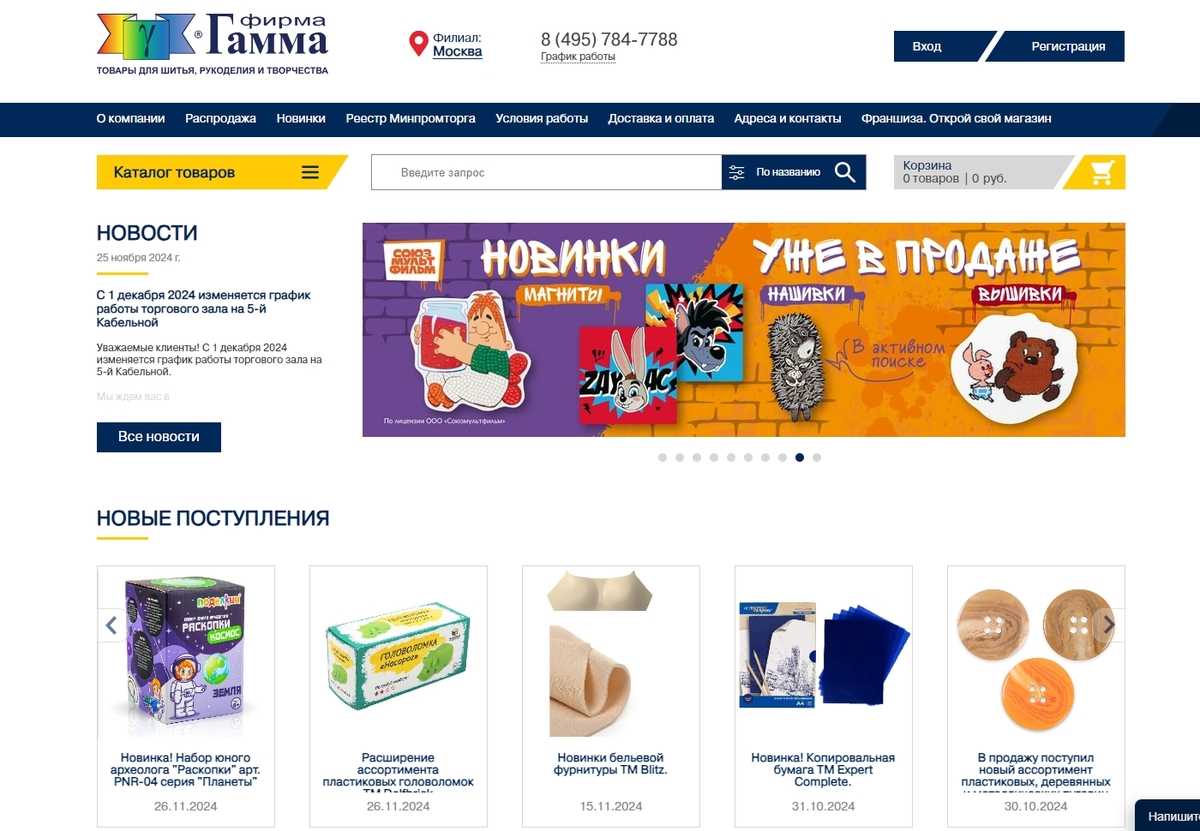 2. На сайте «Фирмы Гамма» клиент уже на первом экране видит свежие поступления продукции, действующие акции и новости компании.