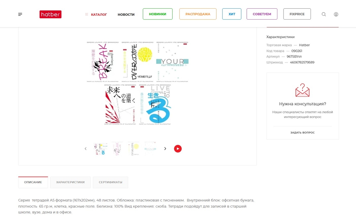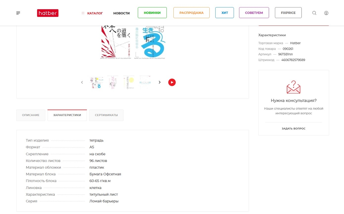 Например, для тетради это может быть формат, количество листов, плотность бумаги, цвет и формат линовки, тип скрепления листов, вид обложки и т. д. Смотрите, как это сделал ПЗБМ.