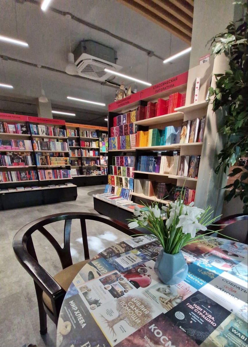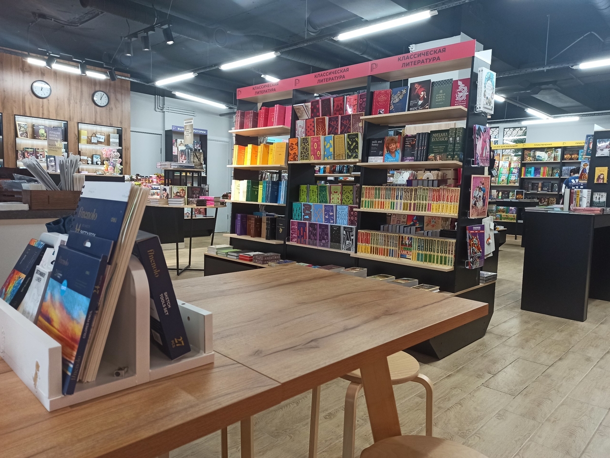 - Оформление: магазины франшизы отличает уютный и продуманный интерьер, в котором хочется выбирать книги без спешки и с удовольствием.