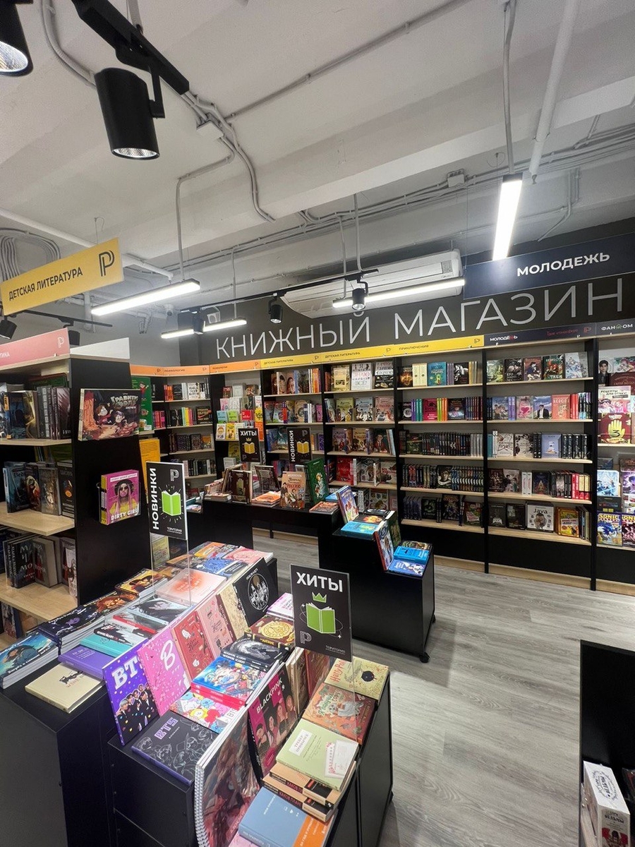 - Книжный уголок (от 10–20 кв. м) — компактная, но привлекательная зона, где собраны главные хиты, новинки художественной, прикладной, молодёжной, детской и подарочной литературы.