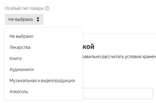 Нам предлагается выбрать особый тип товара, но для канцелярии это необязательный пункт, поэтому просто посмотрите, что тут есть.