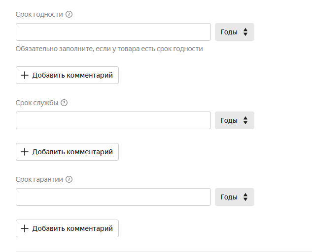 Есть ещё пункты «Срок службы» и «Срок гарантии», возможность добавить комментарий к каждому из них.
