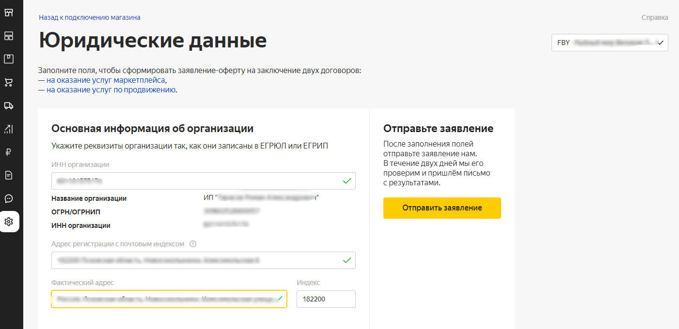 Вам будет предложено заполнить заявление. Называется страница «Юридические данные». На первом экране указываем основную информацию о вашей организации: