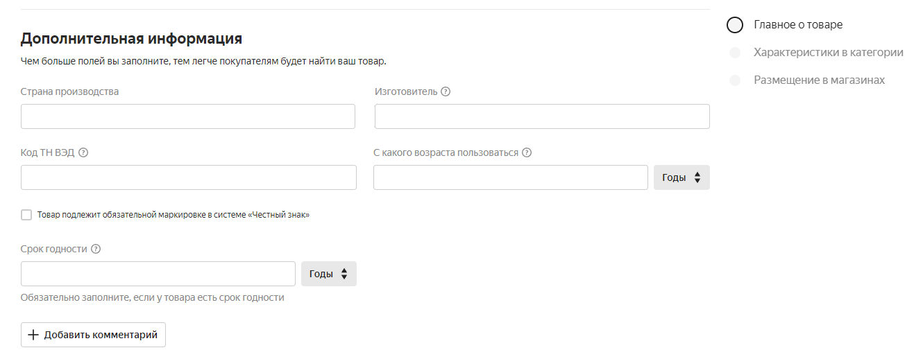 Такой способ подойдёт, если у вас один или несколько товаров. Для большого числа позиций он станет слишком времязатратным, и лучше воспользоваться следующим — загрузкой с помощью файла.