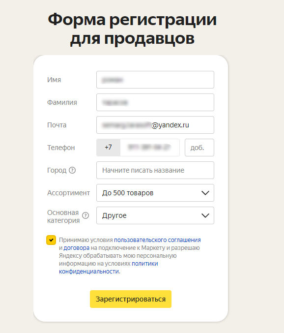 Имейте в виду, что категории «Канцелярские товары» там не существует, поэтому просто выбираем «Другое». Принимаем условия и нажимаем «Зарегистрироваться».