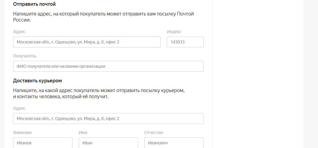 Если вы хотите возвращать бракованный товар, нужно выбрать способ отправки. Укажите адрес, по которому должна производиться доставка. Если будете использовать только один способ, заполняйте только один этот вариант.