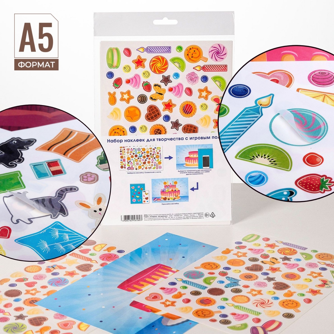 Наборы наклеек многоразовых с игровым полем для творчества от Hatber