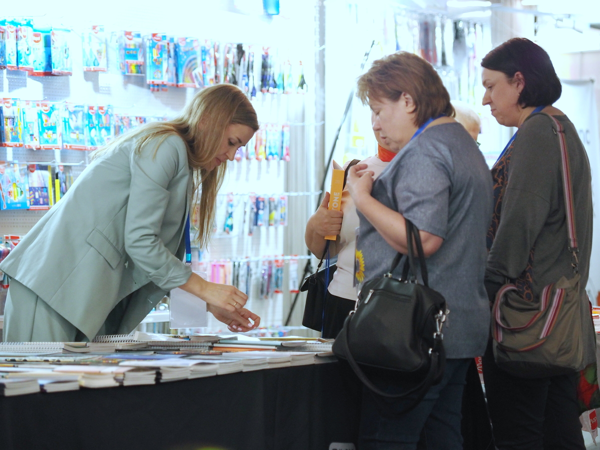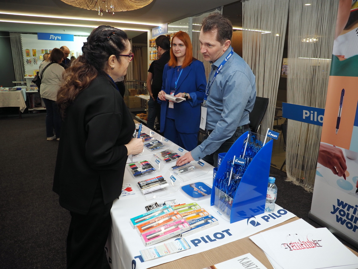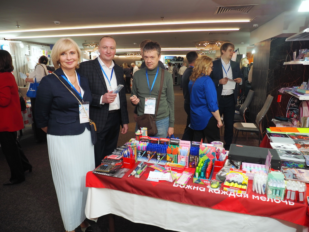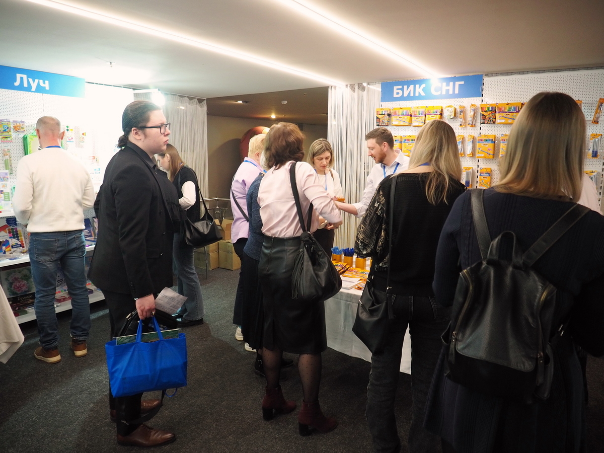 Люди, стенды, канцтовары, переговоры и беседы замершие на снимках
