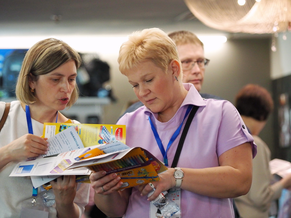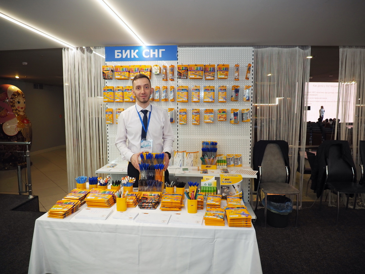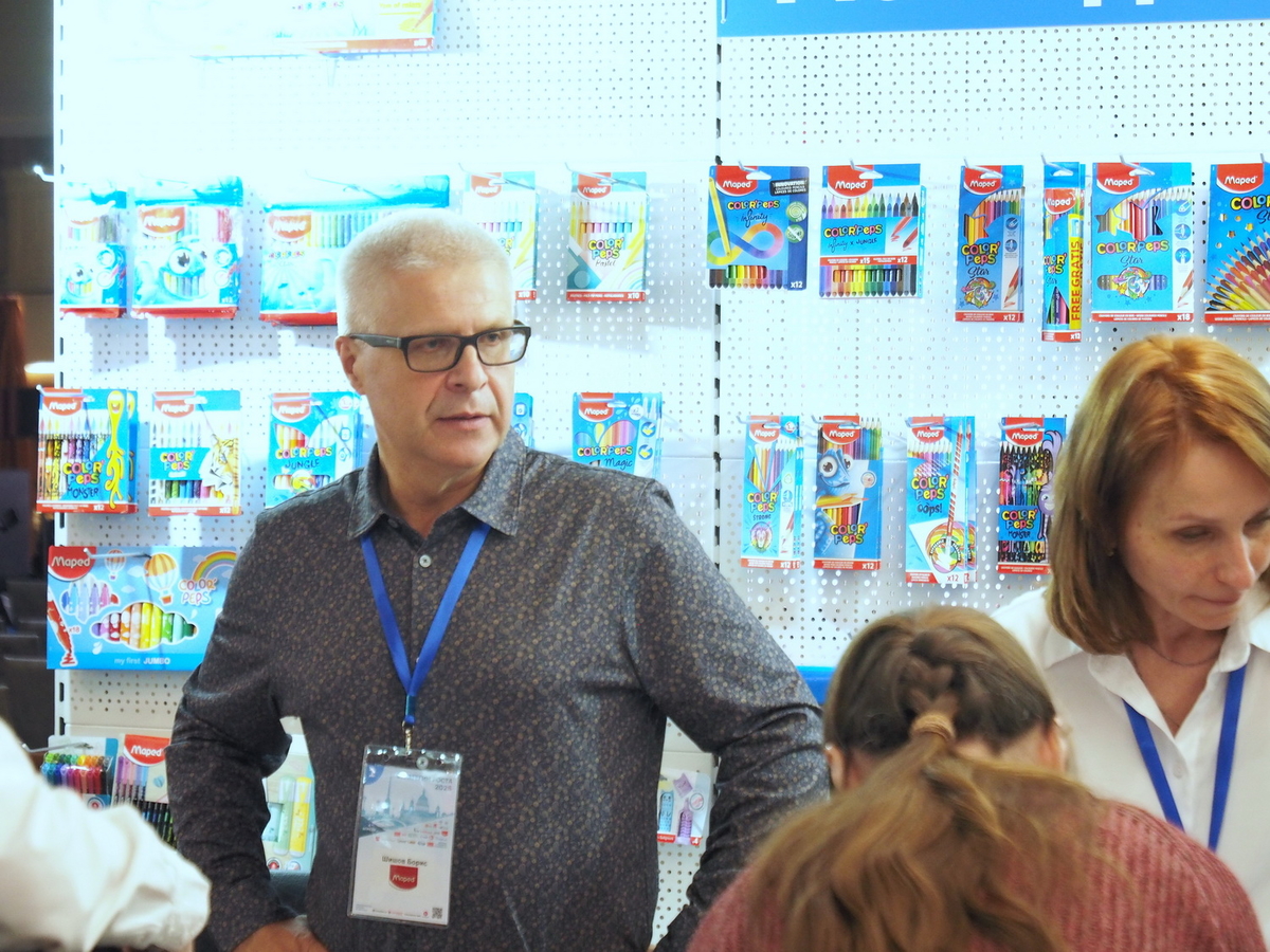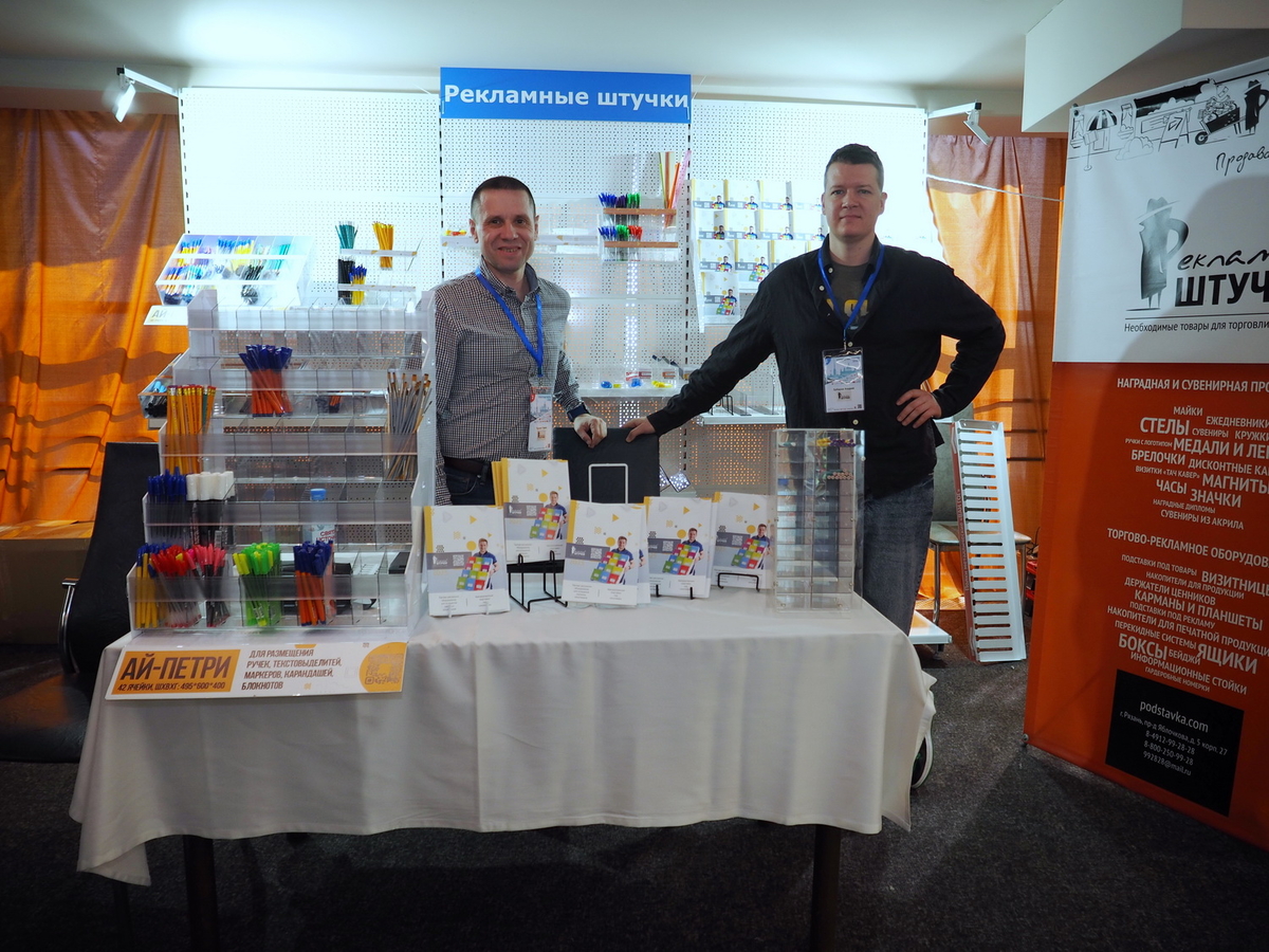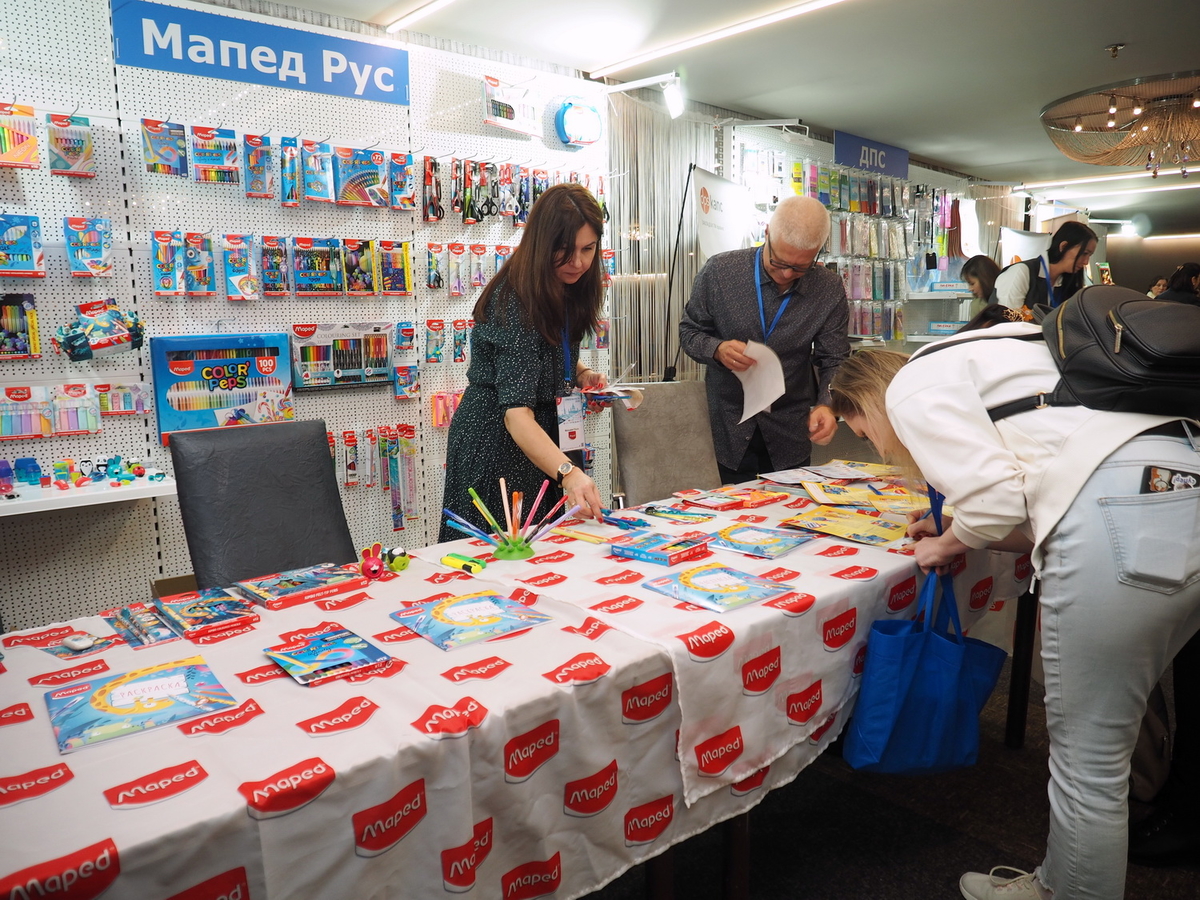 Люди, стенды, канцтовары, переговоры и беседы замершие на снимках