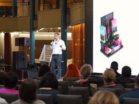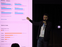 Люди, выступления, дискуссии, отчёты, доклады и обучения, замершие на снимках