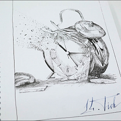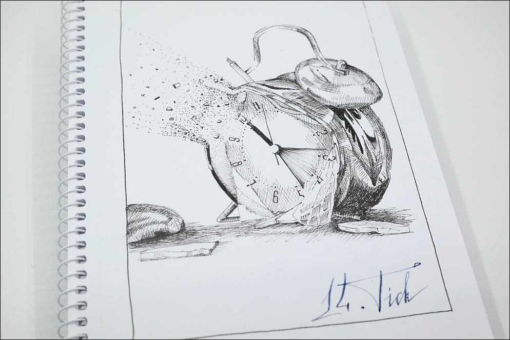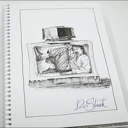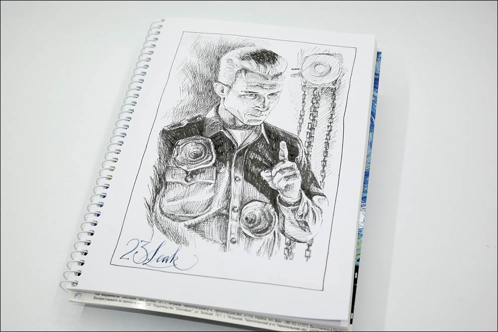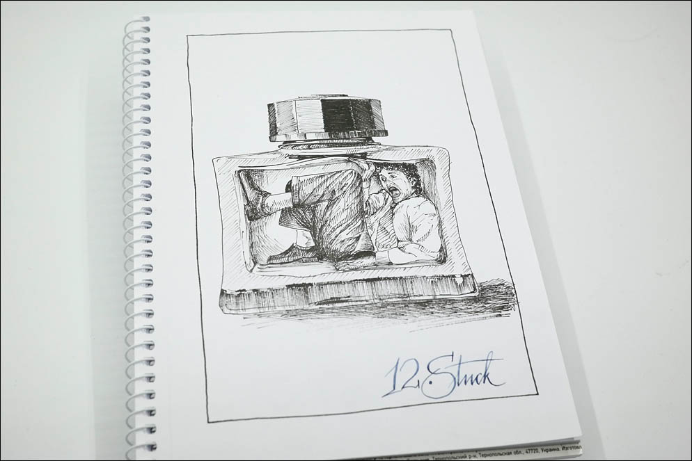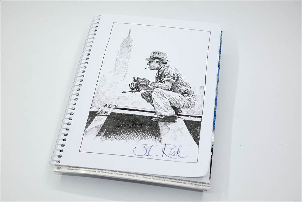 Художник: Андрей Ленский. Фотограф: Андрей Ленский. Инструменты и бумага: Чернила — Platinum Carbon Black, Перьевая ручка — Pilot Capless Vanishing Point with Custom UEF nib, Альбом был формата А4, обрезан до А5, простой школьный на 40 листов торговой марки «Школярик».
