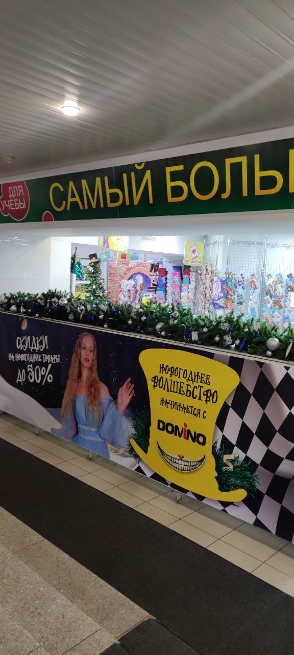 Магазин «Домино» в Благовещенске — участник конкурса на лучшее новогоднее оформление канцелярского магазина к 2023 году. Организатор конкурса — «Канц.клуб».