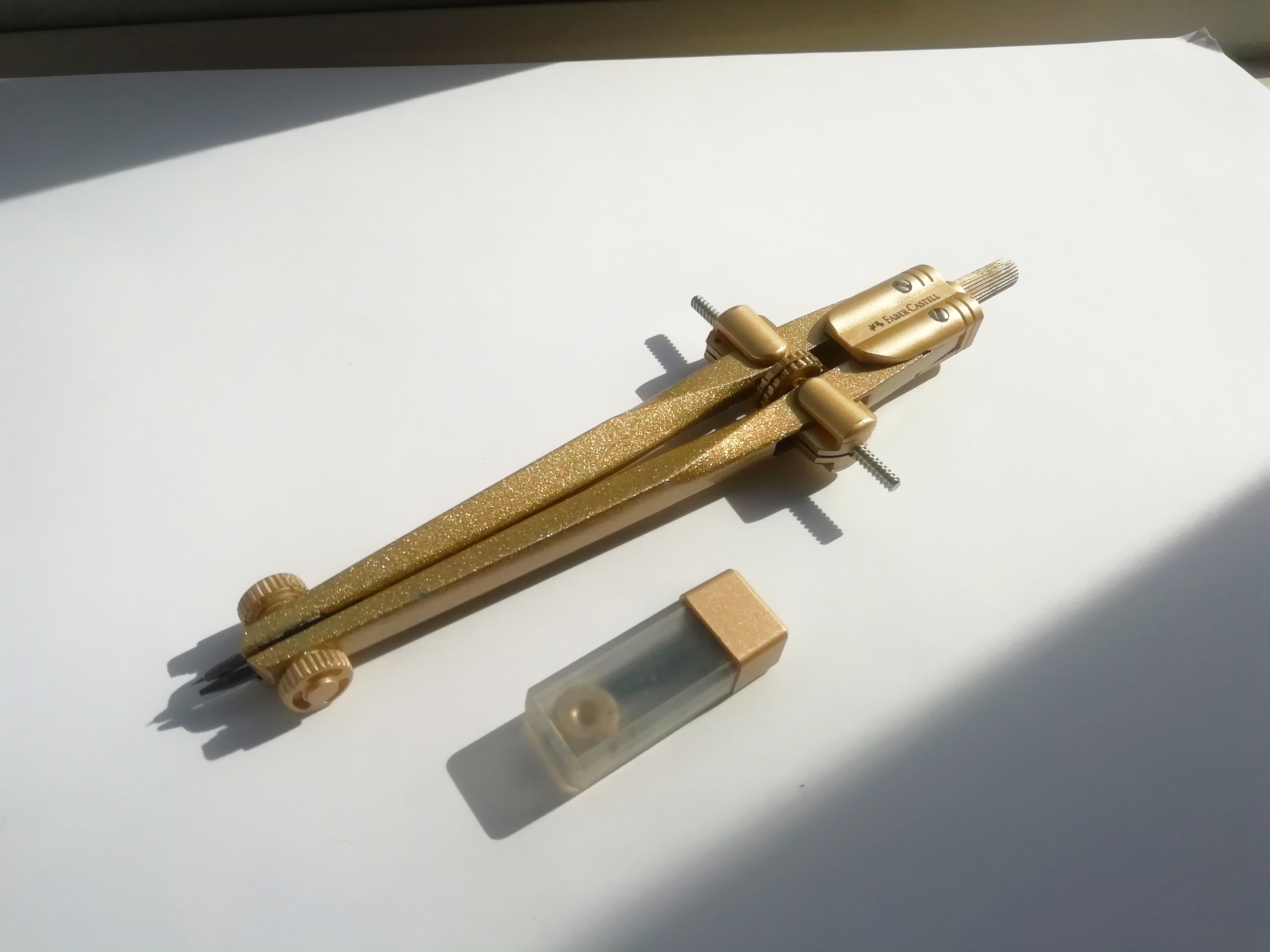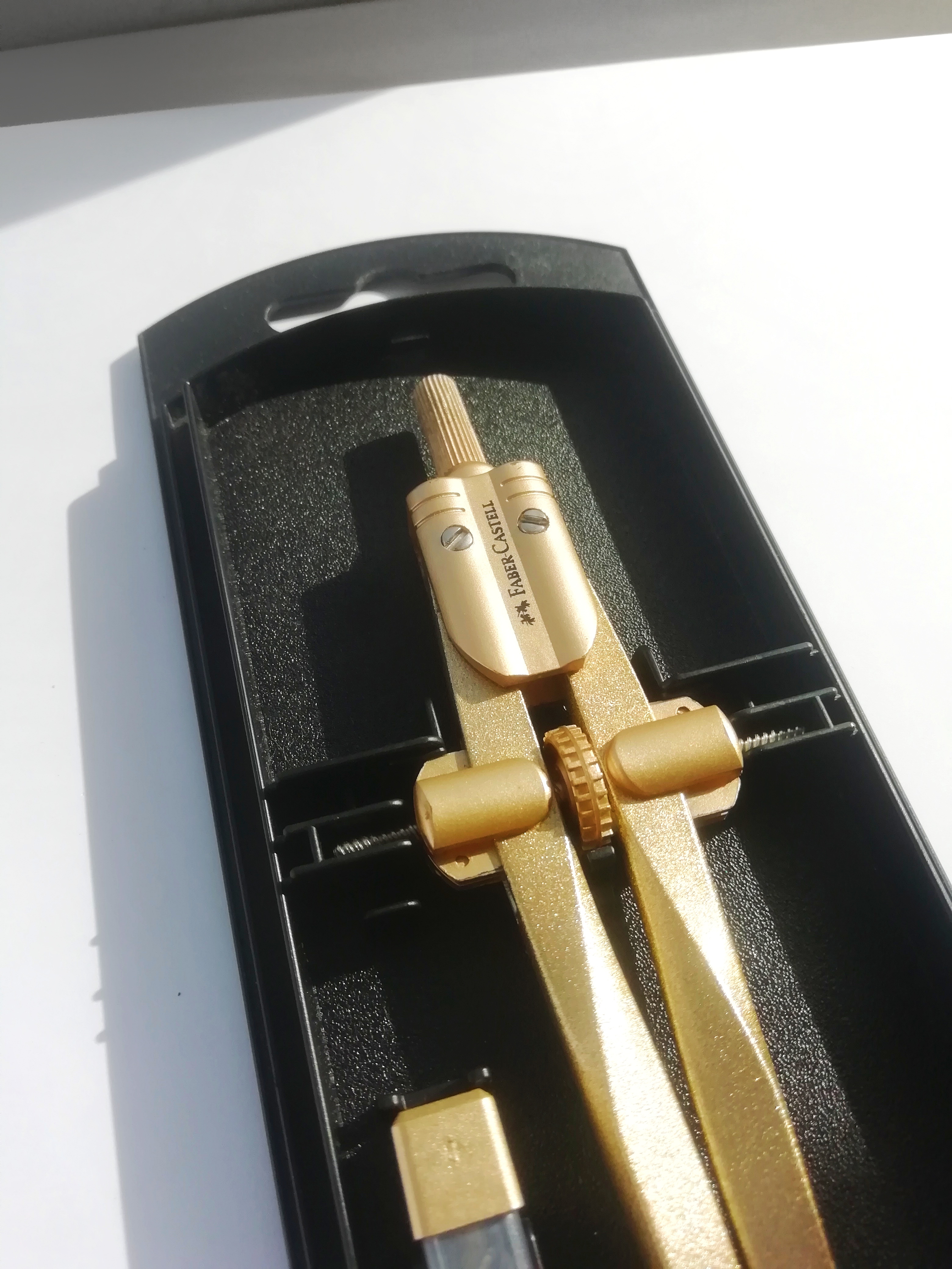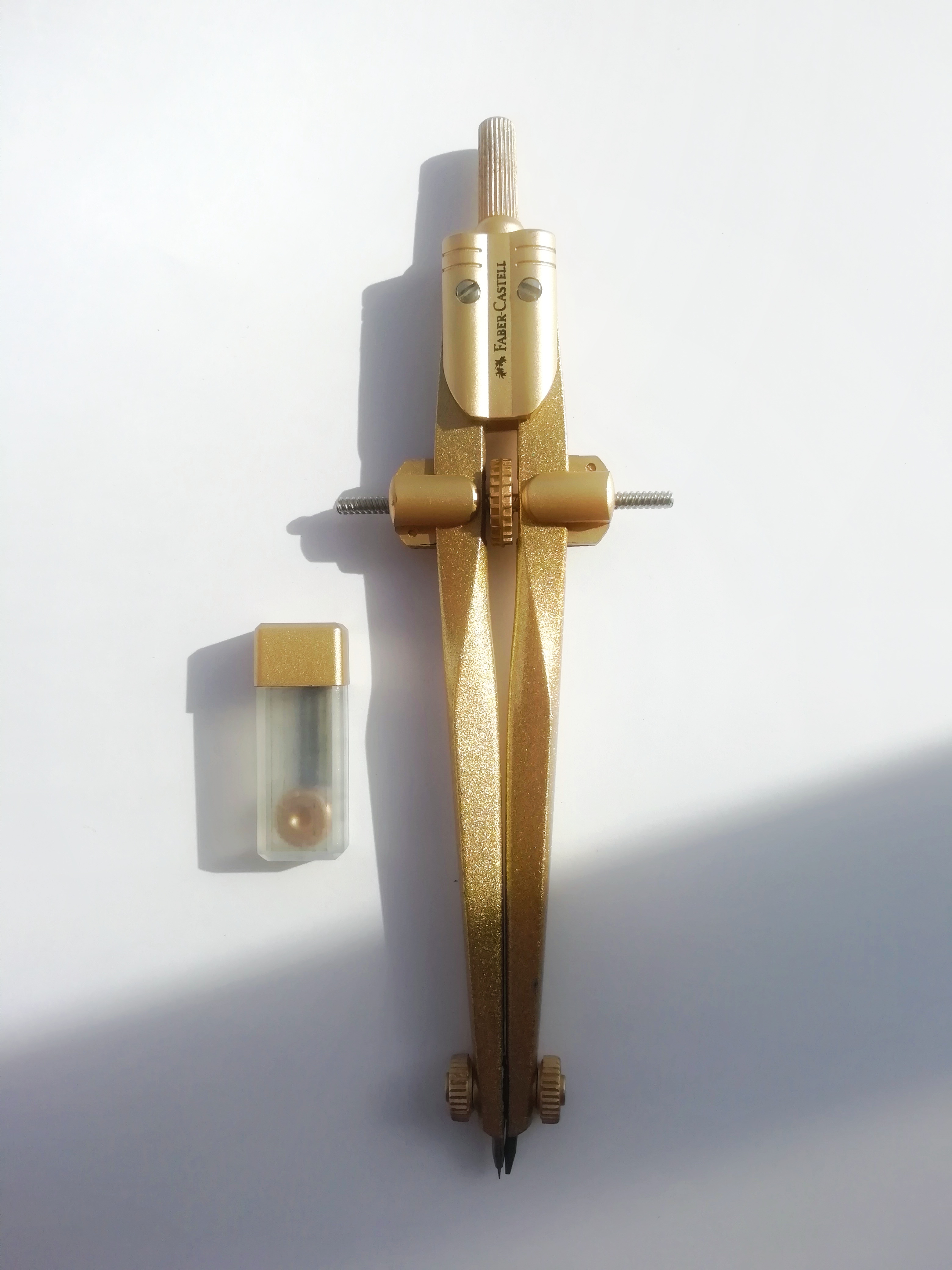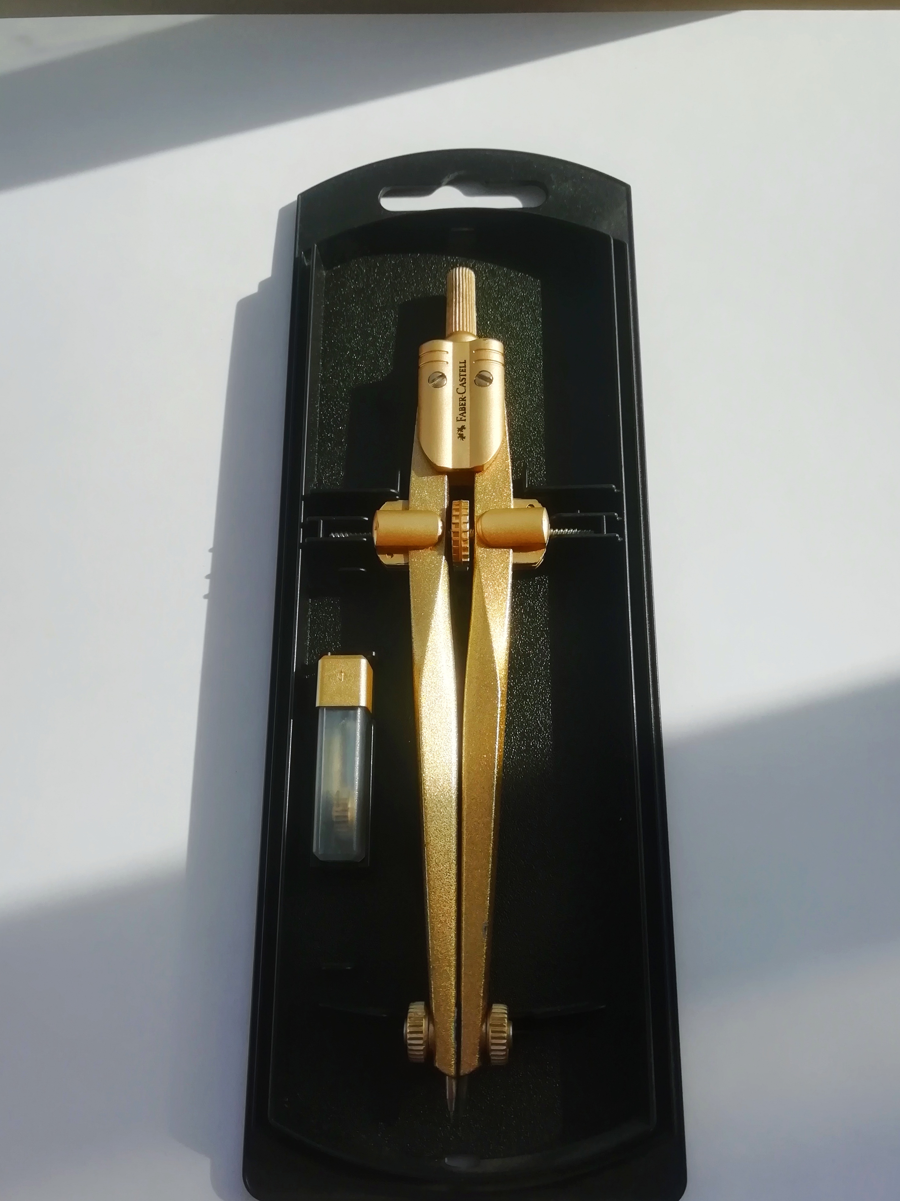 Фотограф: Ярослав Низамов. Полное наименование: циркуль FABER-CASTELL STREAM 2020, золотой + грифели, пластиковый футляр. Артикул инструмента: 174540.