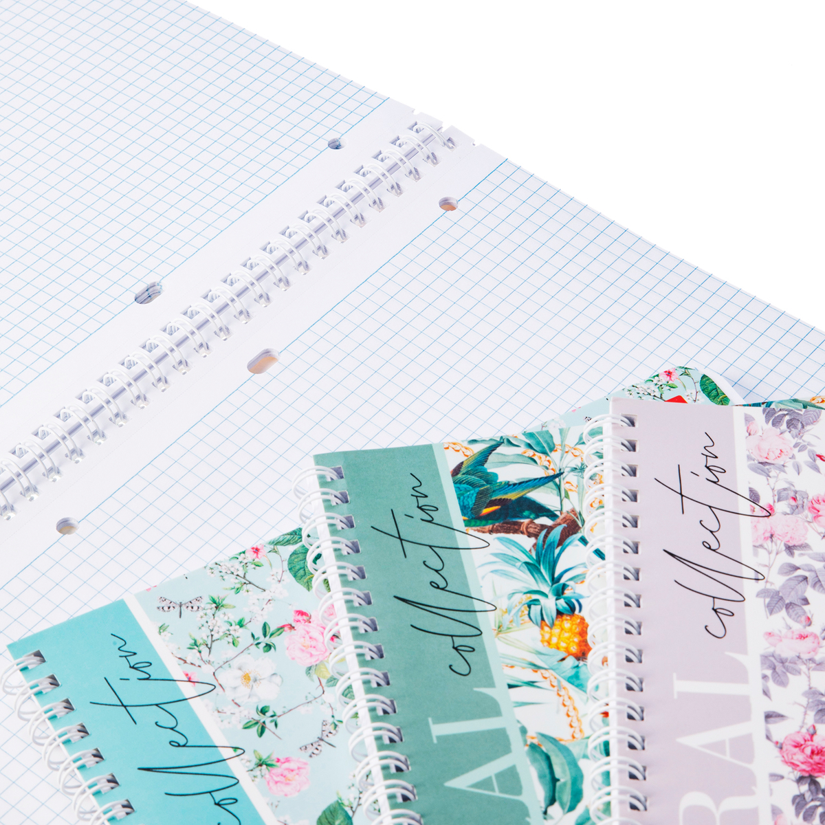 Новые тетради А4-формата 80 листов на гребне в клетку серии Floral collection в матовой ламинации. Обложки тетрадей выполнены в приглушённых цветах и украшены изображениями природных сцен, декоративными узорами, а также цветами, птицами и фруктами. Такие тетради не только помогут организовать ваши записи, но и украсят ваш рабочий стол.