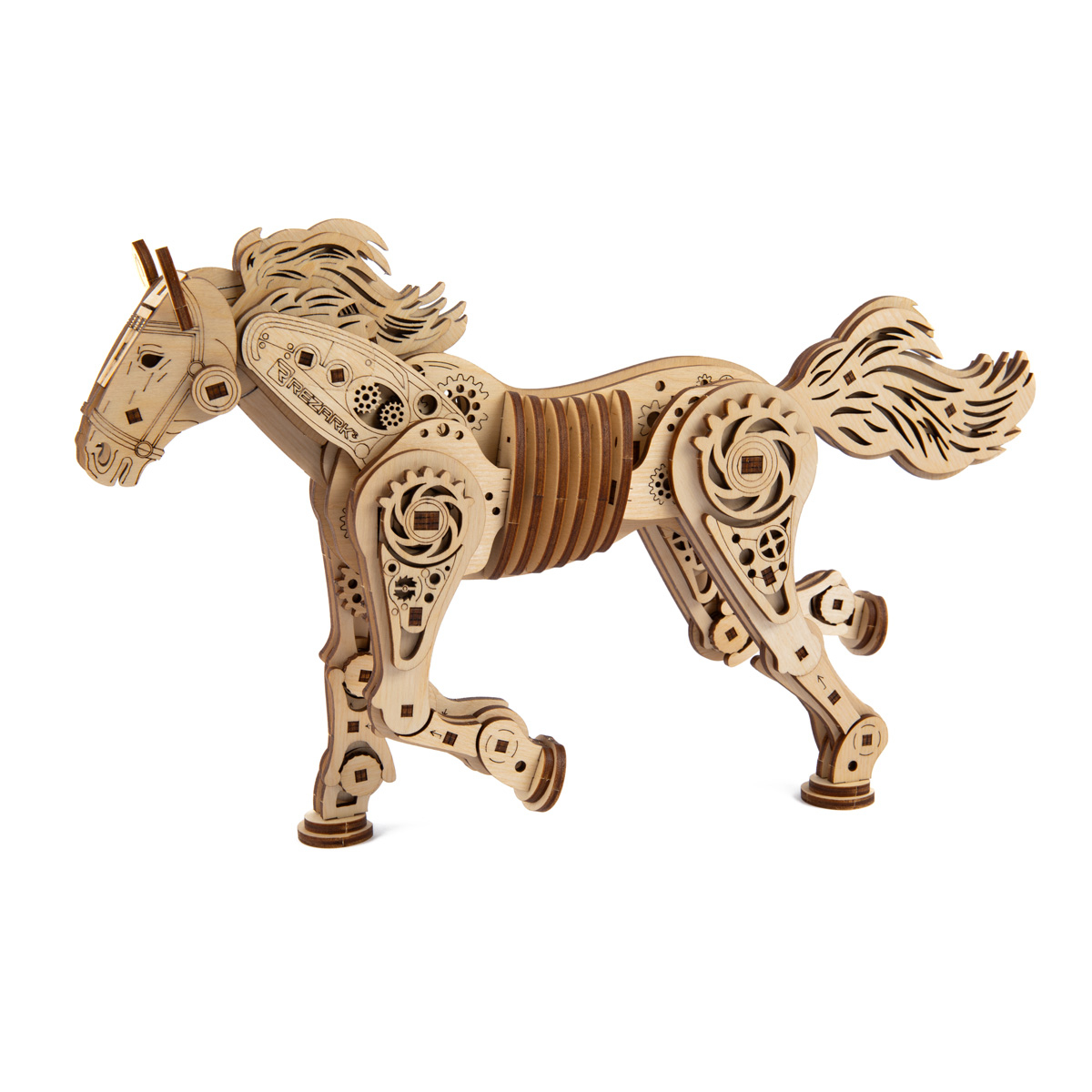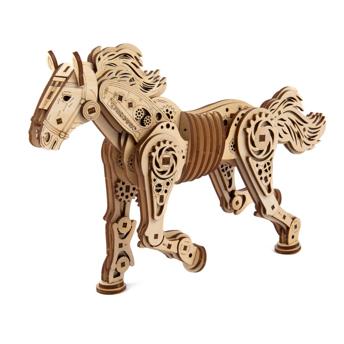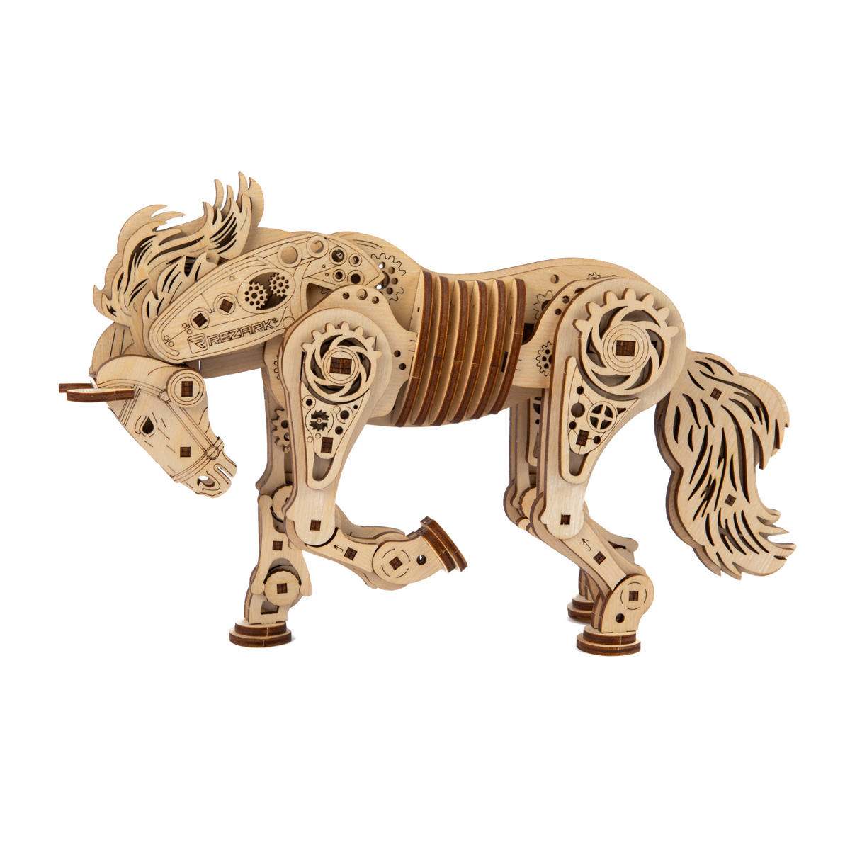 Торговая марка REZARK представляет механическую лошадку — это уникальный 3D-пазл из фанеры с эксклюзивным дизайном.