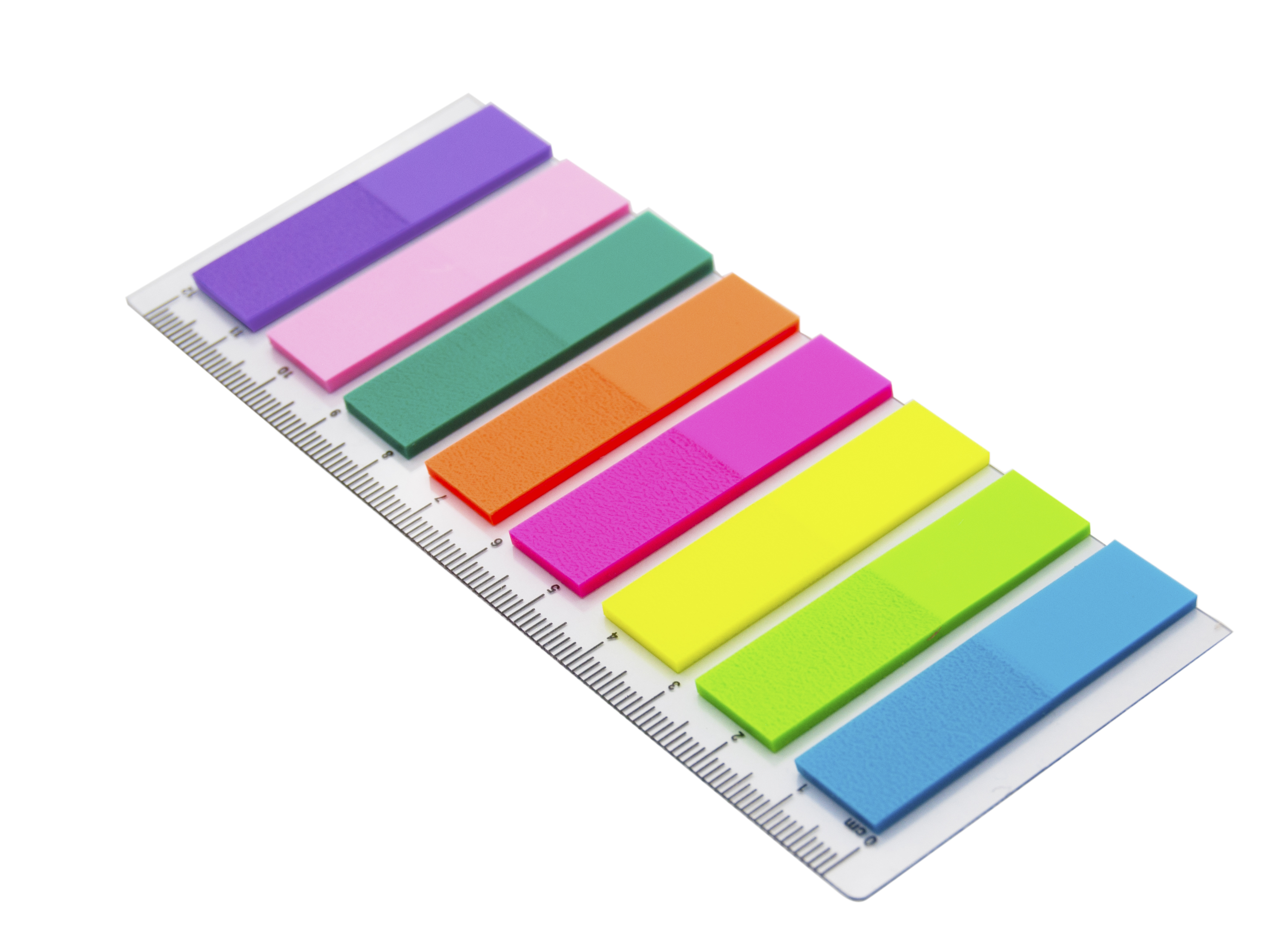 Пластиковые закладки пополнились двумя видами: комплект из 8 неоновых цветов на удобной пластиковой линейке по 25 закладок в каждом блоке и комплект из 4 неоновых цветов по 20 закладок в каждом блоке. Закладки в комплекте из 4 цветов поставляются в диспенсере, для большего удобства использована система Z-сложения. Размер каждого блока составляет 45*12 мм.