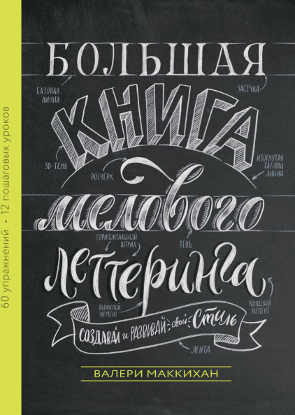 О-о-очень объёмная и необыкновенно красивая книга. Понравится всем, кто давно хотел освоить необычный вид рисования — без красок и альбомов. Вас ждут мел, доска, надписи в стиле ретро, буквы с завитушками и фразы из ленточек.