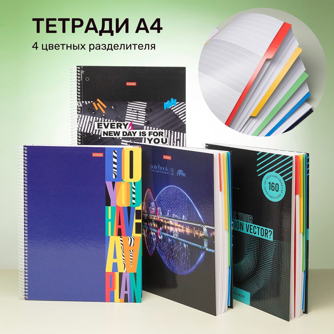 Тетради А4 с четырьмя разделителями от Hatber