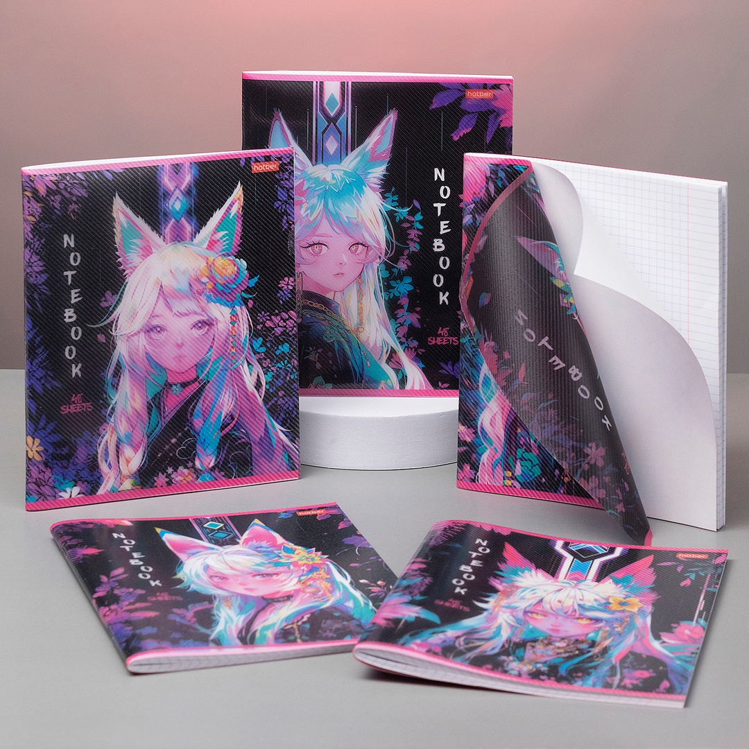 Тетради «Кицунэ» в пластиковой обложке с печатью от Hatber