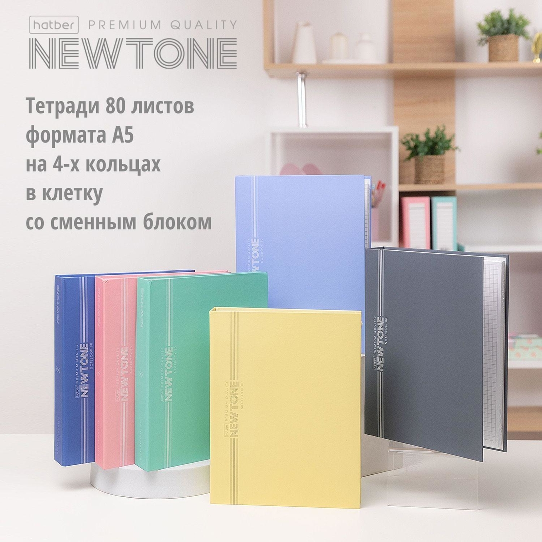 Premium тетради NEWtone PASTEL формата А5 на 4 кольцах в клетку со сменным блоком