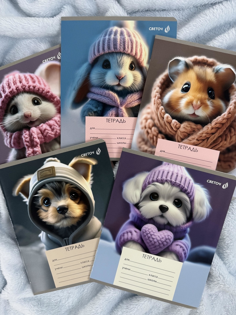 Хомячок, мышка, собачка и зайка ждут вас на обложках новых тетрадей «Лапки в шапках» от ТМ «Светоч»