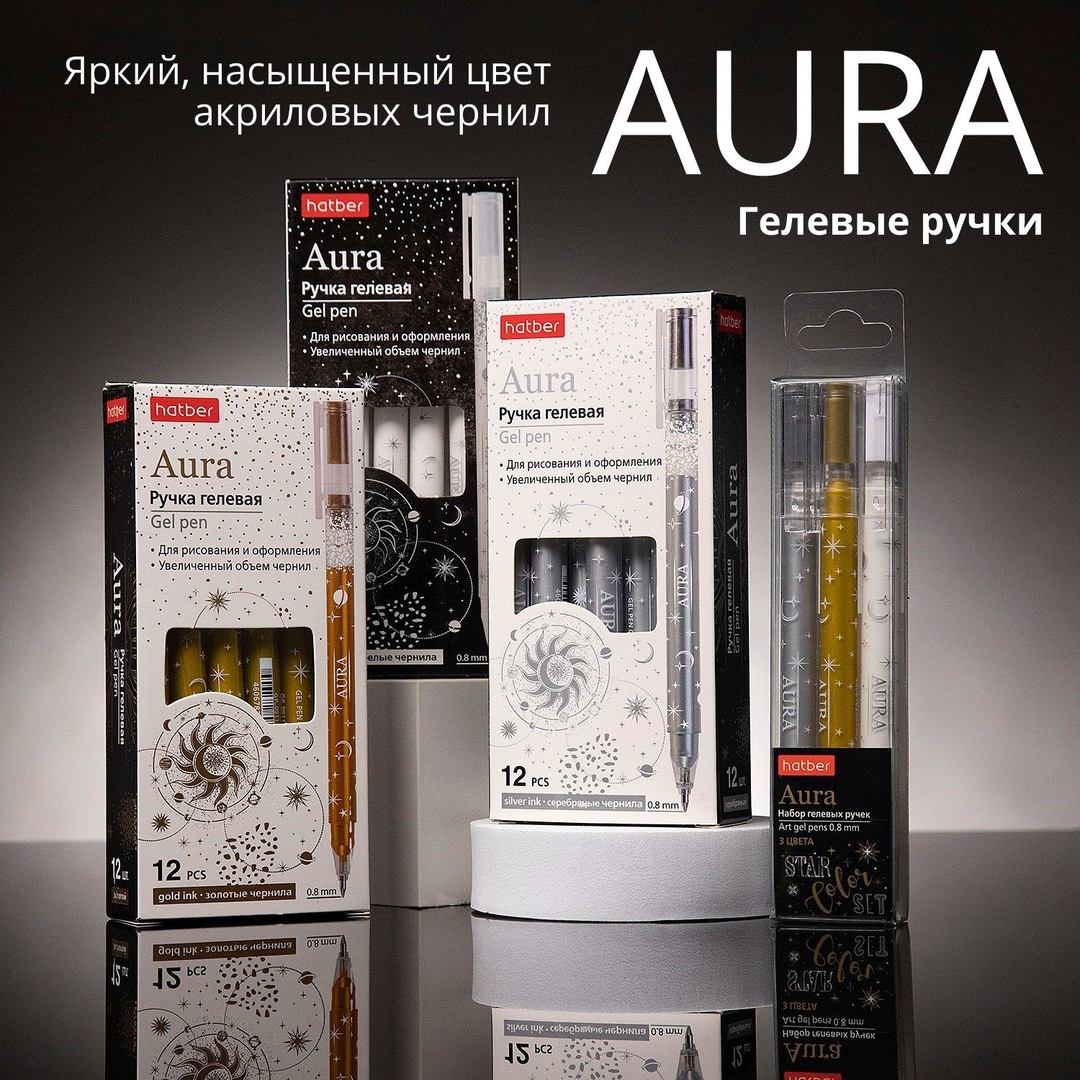 AURA. Ручки гелевые (золото, серебро, белая) от Hatber