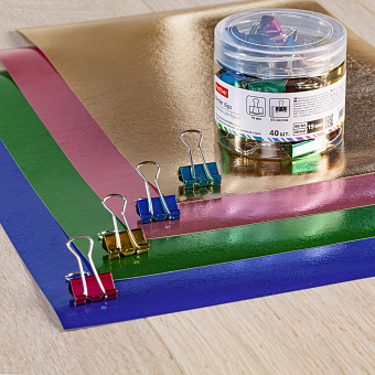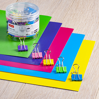 Неоновые и металлические зажимы для бумаг от Hatber