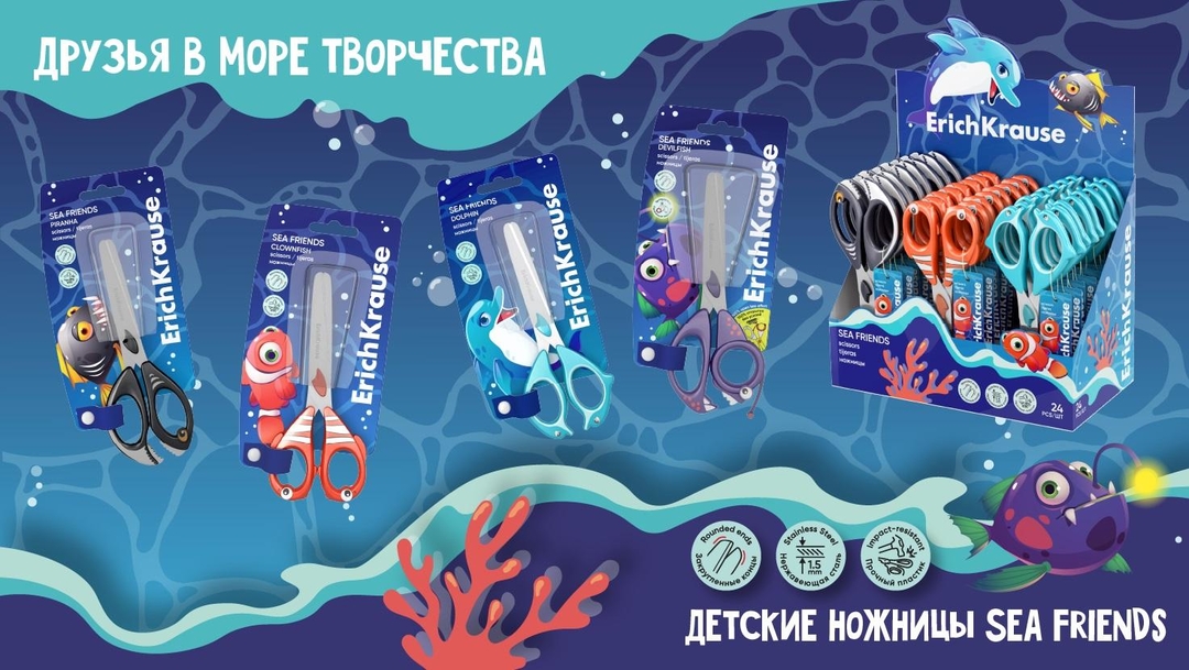 На волне с детским творчеством: новые ножницы Sea Friends от ErichKrause
