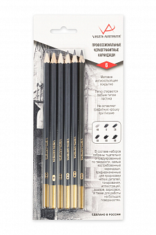 ТМ VISTA-ARTISTA выпустила в блистере набор из шести мягких чернографитных карандашей (HB, B, 2B, 4B, 6B, 8B).