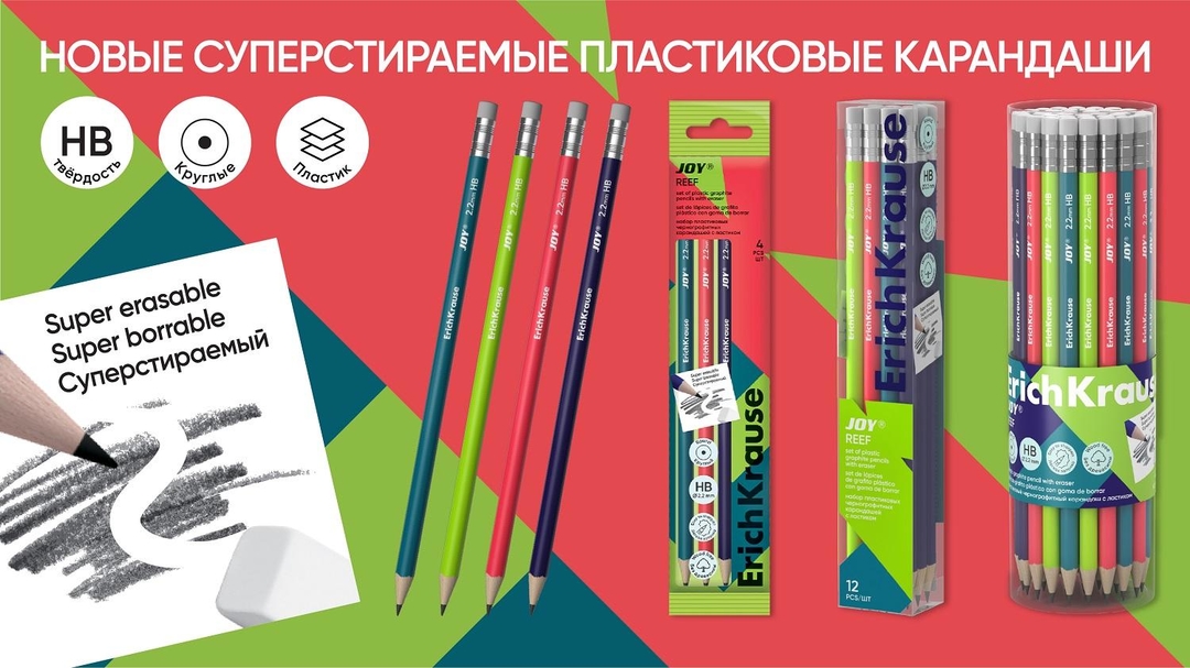 Сделаны из пластика — это не фантастика! Новые суперстираемые карандаши от ErichKrause