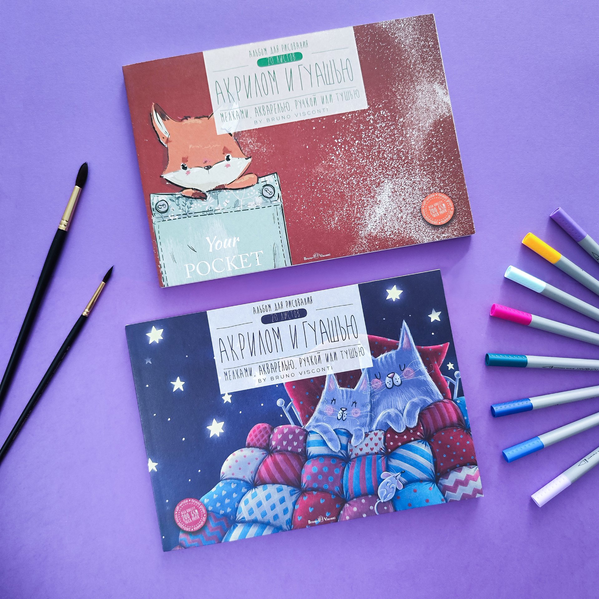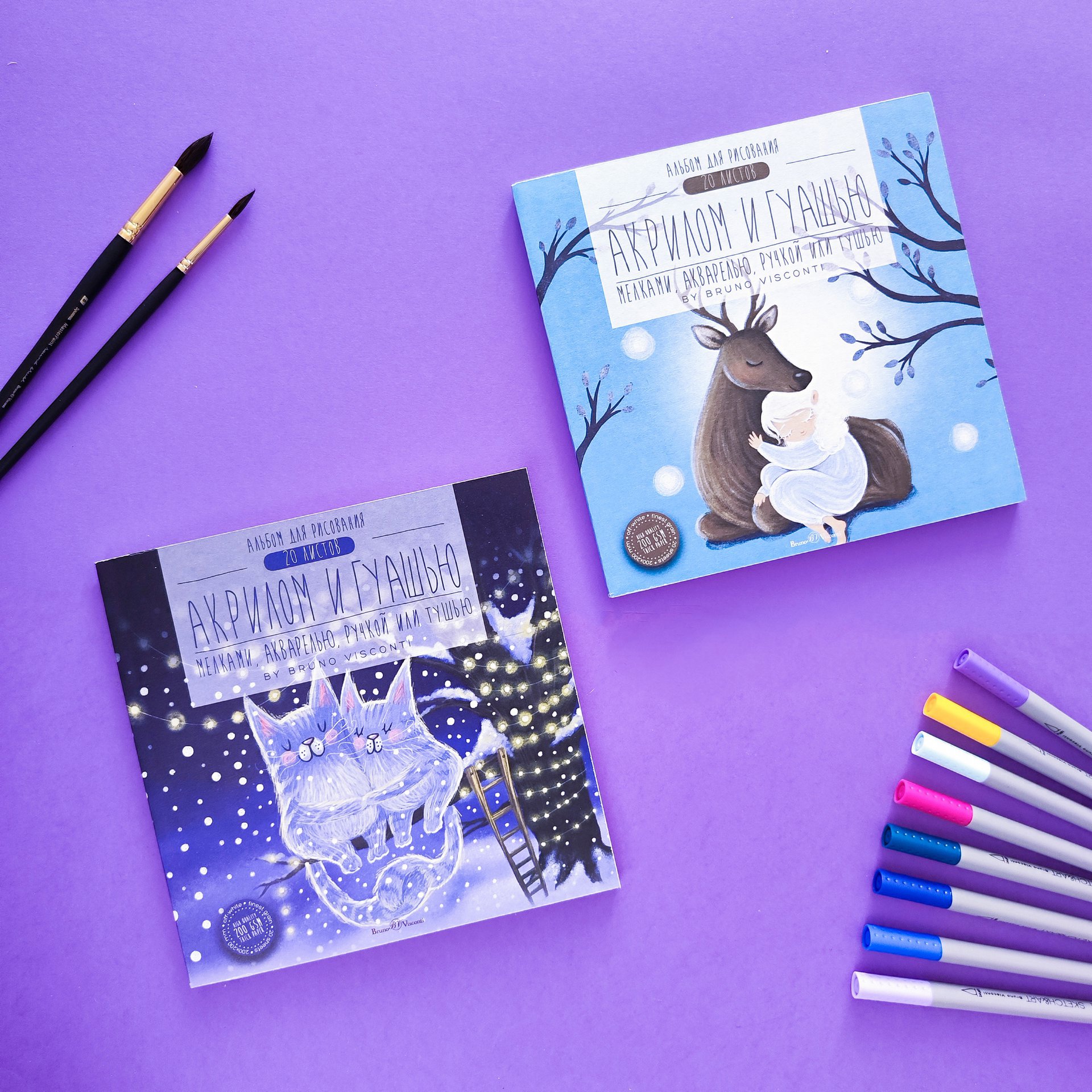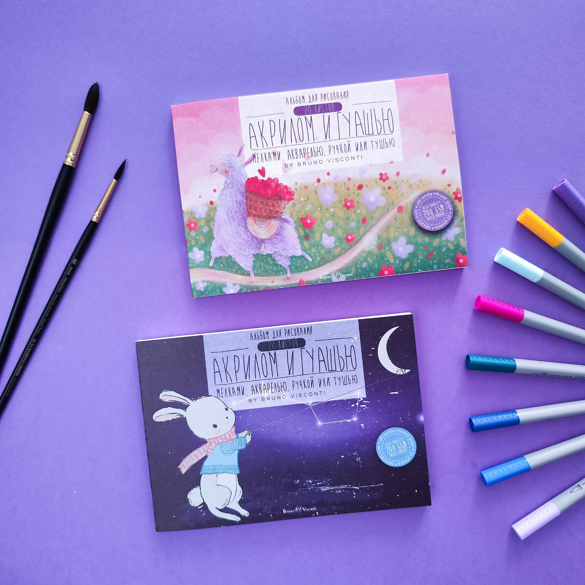 Детский альбом для рисования гуашью, акрилом и акварелью торговой марки Bruno Visconti состоит из 20 листов чистоцеллюлозной бумаги, имеет жёсткую картонную подложку 2,5 мм. Идеально подходит для рисования гуашью, акрилом и акварелью, также можно использовать мелки, тушь или ручку. Клеевое бесшвейное скрепление позволяет легко и аккуратно отрывать листы. Альбом прекрасно подойдёт для учащихся художественных школ и студий, а также для занятий дома.