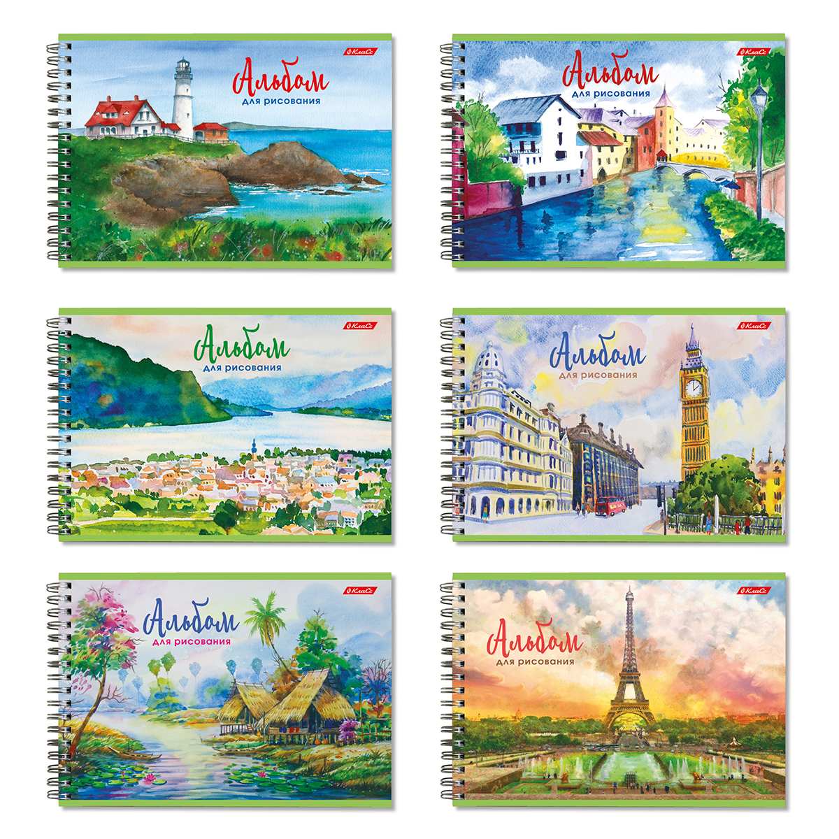 Живые и лёгкие обложки альбомов для рисования «Рисуем пейзаж» представляют собой шесть живописных мест в воздушной акварели. Одно из них наверняка вдохновит, и жанр пейзажа будет освоен!